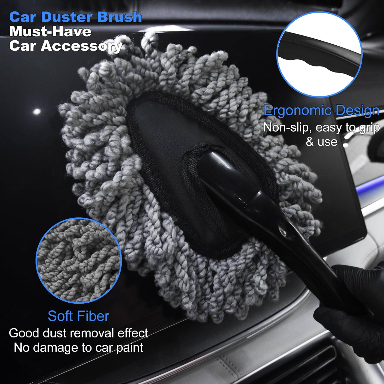 • 【Car Duster Brush】The car duster interior is made with imported soft bristles and no metal parts, ensuring your car’s surfaces are cleaned without the risk of marring or scratching. The microfiber duster brush with a large surface area and comfortable handle allows for quick and efficient dusting of car interiors, making your cleaning routine faster and more effective