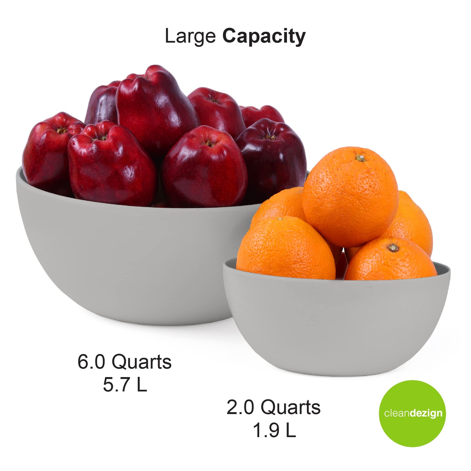 11.5" Extra Large Salad and 8" Serving Bowl with Wooden Lid and Servers - Bamboo Fiber Wood Mixing Bowl Set with Utensils & Wooden Cutting Board Top for Fruits, Vegetable Salads, Pasta (8pc Set) Grey