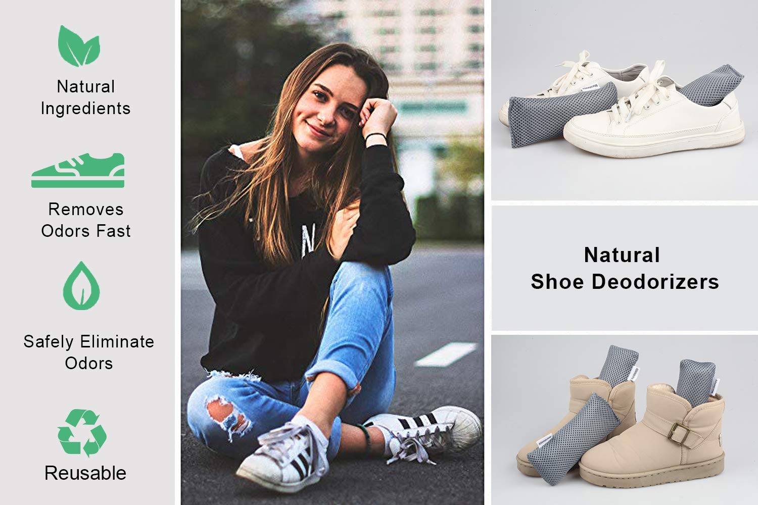 • Odor Absorber- These are made with natural bamboo charcoal, eliminates odors naturally, fragrance free. It is ideal for the familly with pregnant women or children or babies;