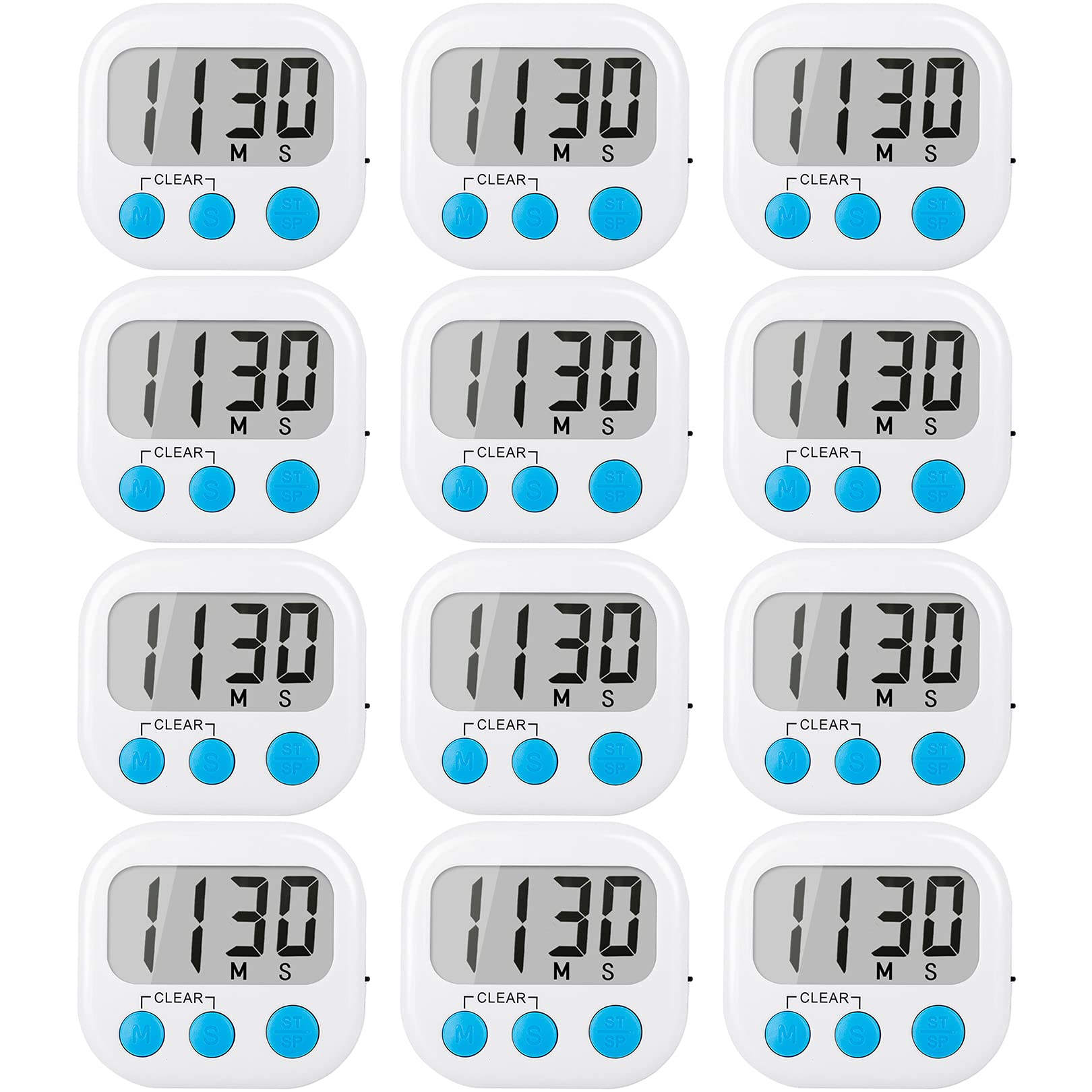 12 Pack Digital Kitchen Timers for Cooking Magnetic Timer for Cooking Loud Alarm White