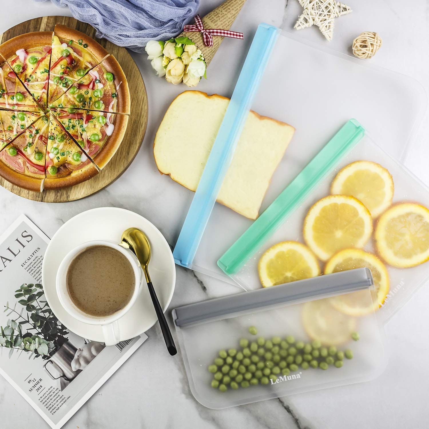 • ✅ MULTIPURPOSE & EASY TO USE - This set of reusable bags comes in three different sizes, making them versatile and convenient to use. They are perfect for storing and freezing food, as well as for organizing household items, such as electronics, toiletries, and other small items. Plus, they are dishwasher safe and easy to clean.