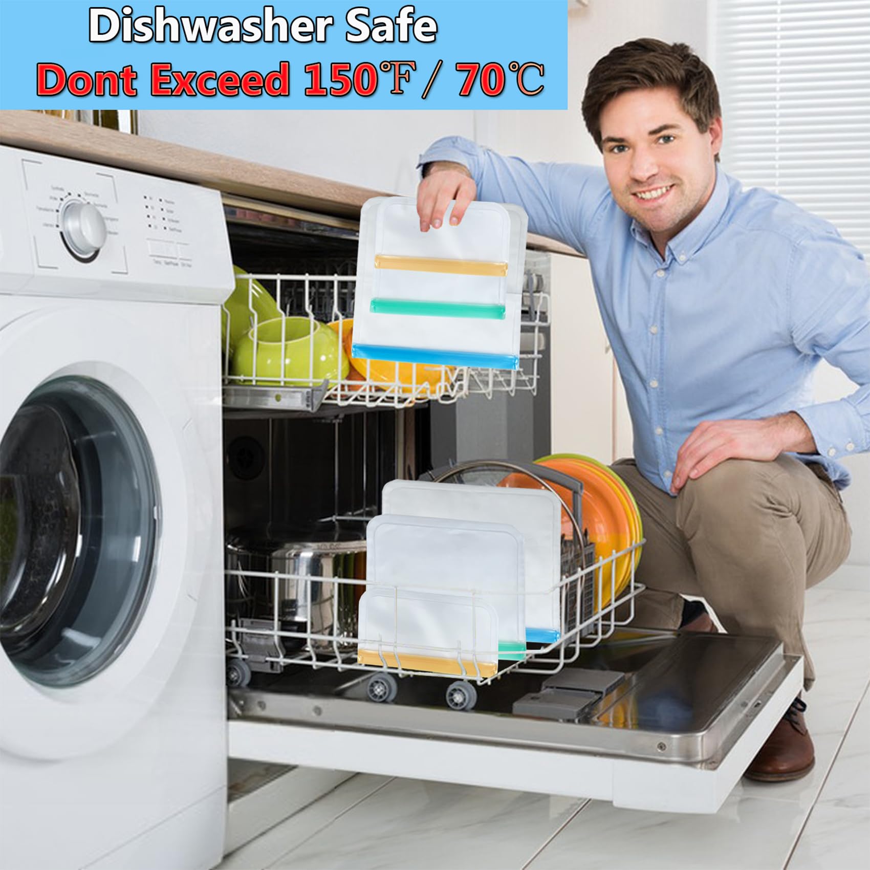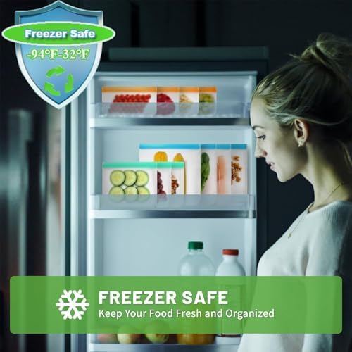 • 【Easy to Clean & Reusable】The inside of reusable silicone freezer bags is smooth and tough, making it difficult for food residue to stick. Note: Please do not place the reusable gallon ziplock bags in the microwave, oven, or dishwasher, as it will damage the zipper seal