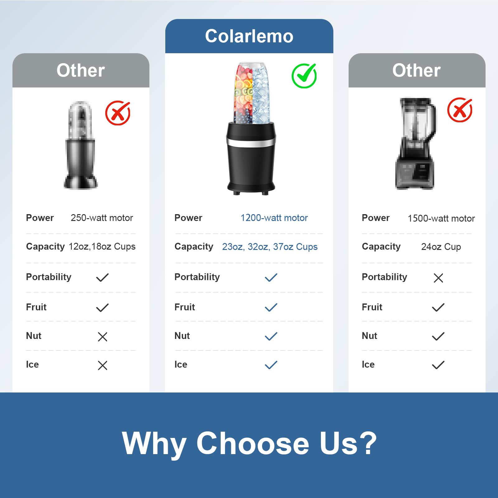 • 3 Versatile Cup Sizes: Your personal blender includes 3 cups in different sizes (23 oz, 32 oz, and 37 oz full capacity) to suit a variety of blending needs. Each cup features clear measurement lines, allowing you to easily track the amount of ingredients added. Durable and drop-resistant, these cups come with 2 flat lids and 1 to-go lid for easy portability, making them perfect for taking your beverages on the go