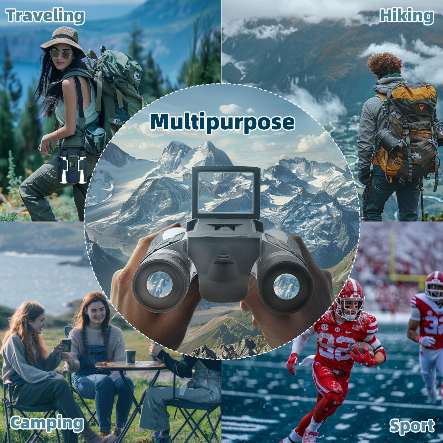 • 【Portable and Versatile】With its compact and lightweight design, this binoculars with camera is highly portable and easy to carry. Whether you're going on a hiking trip, attending a sports event, or simply exploring nature, you can conveniently take this camera and video-enabled binoculars with you. It's a versatile tool that allows you to observe and document your surroundings effortlessly.