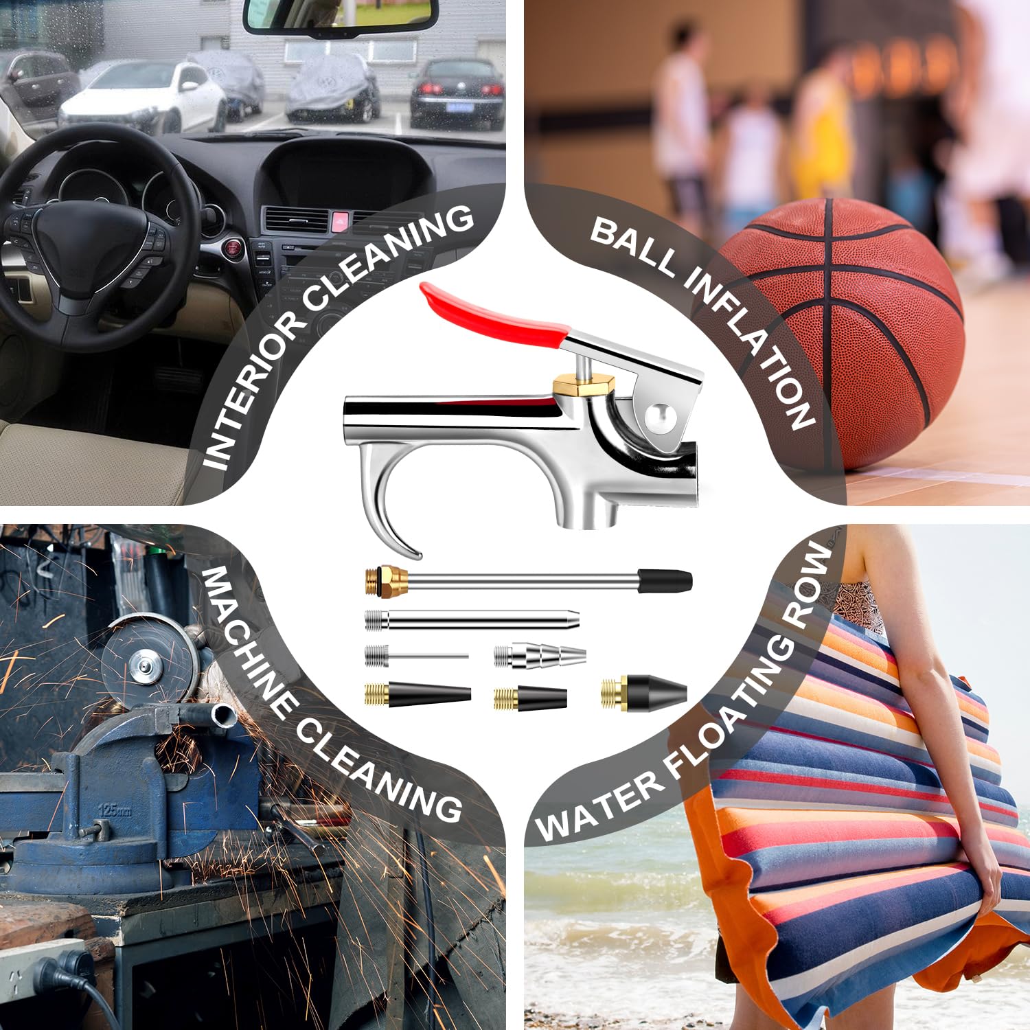 • 【Widely Application】High quality air blower tool fittings set with most you need for your project. 2 pack air flow extensions allow for being choosed to different cleaning jobs, air nozzle with rubber tip better for flimsy surface, 2 pack ball inflate needles with thread converters for inflating pool toys and sports balls. Choosing different thread converters and air nozzles to your project need.