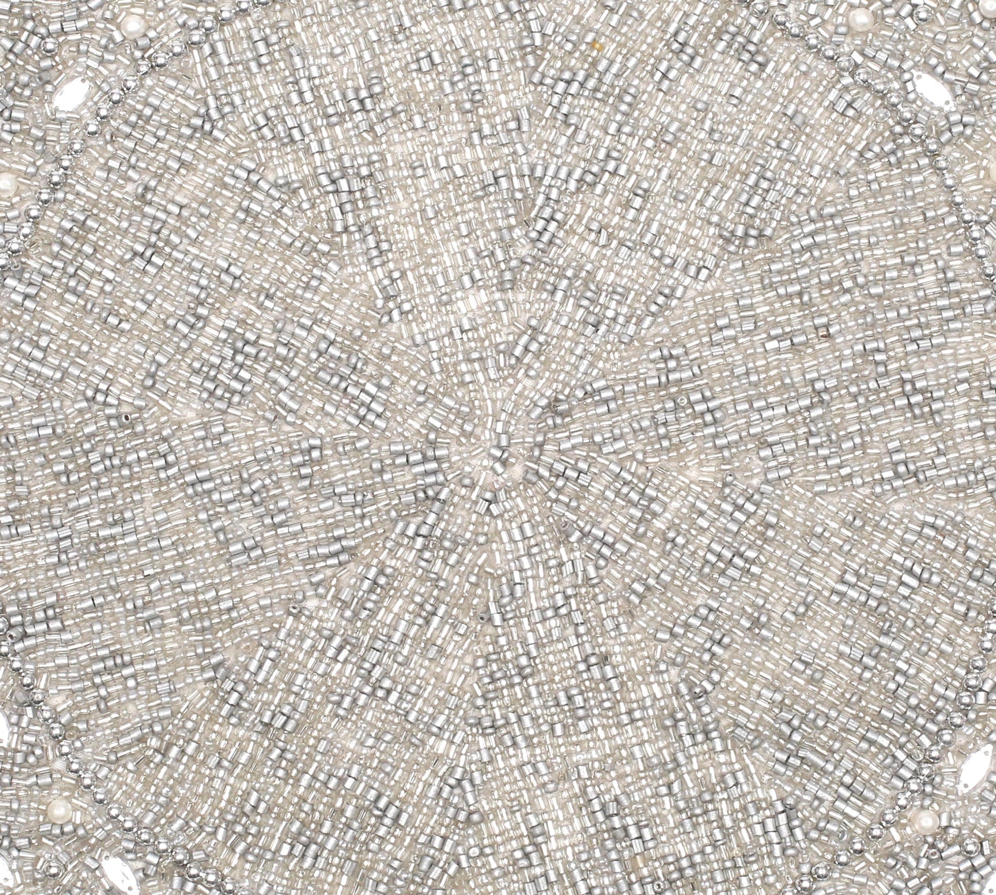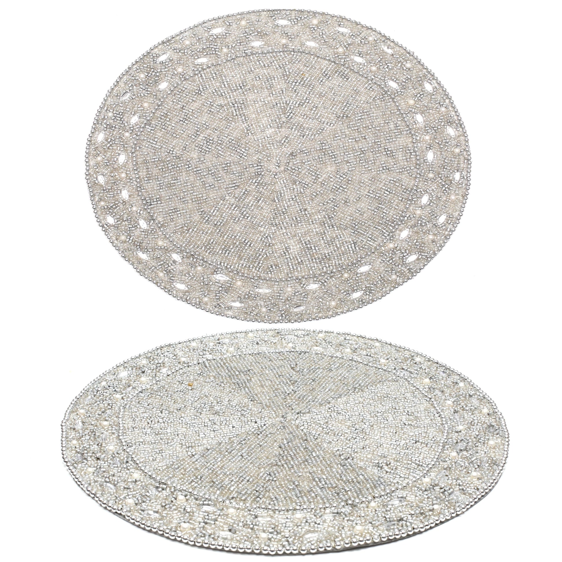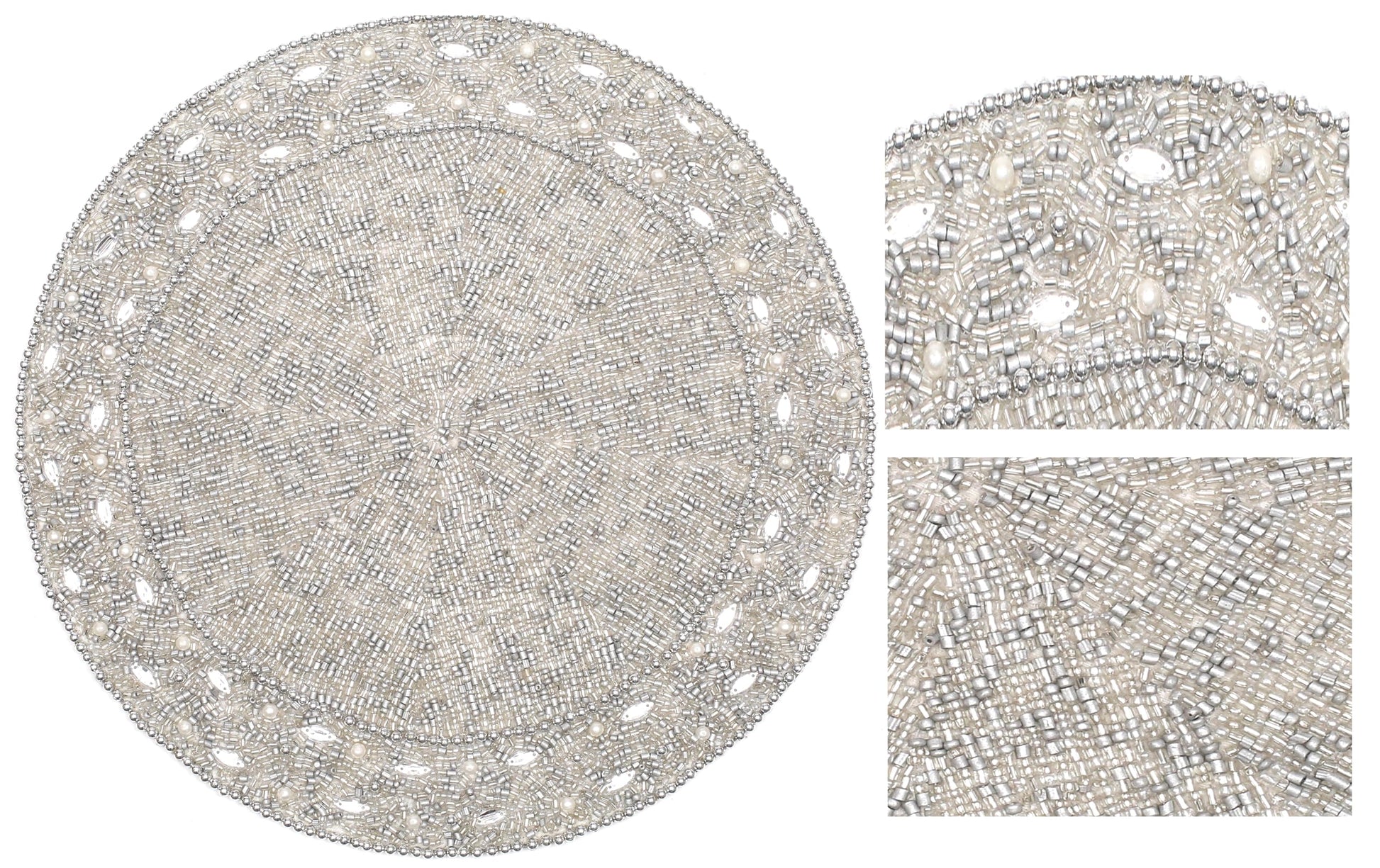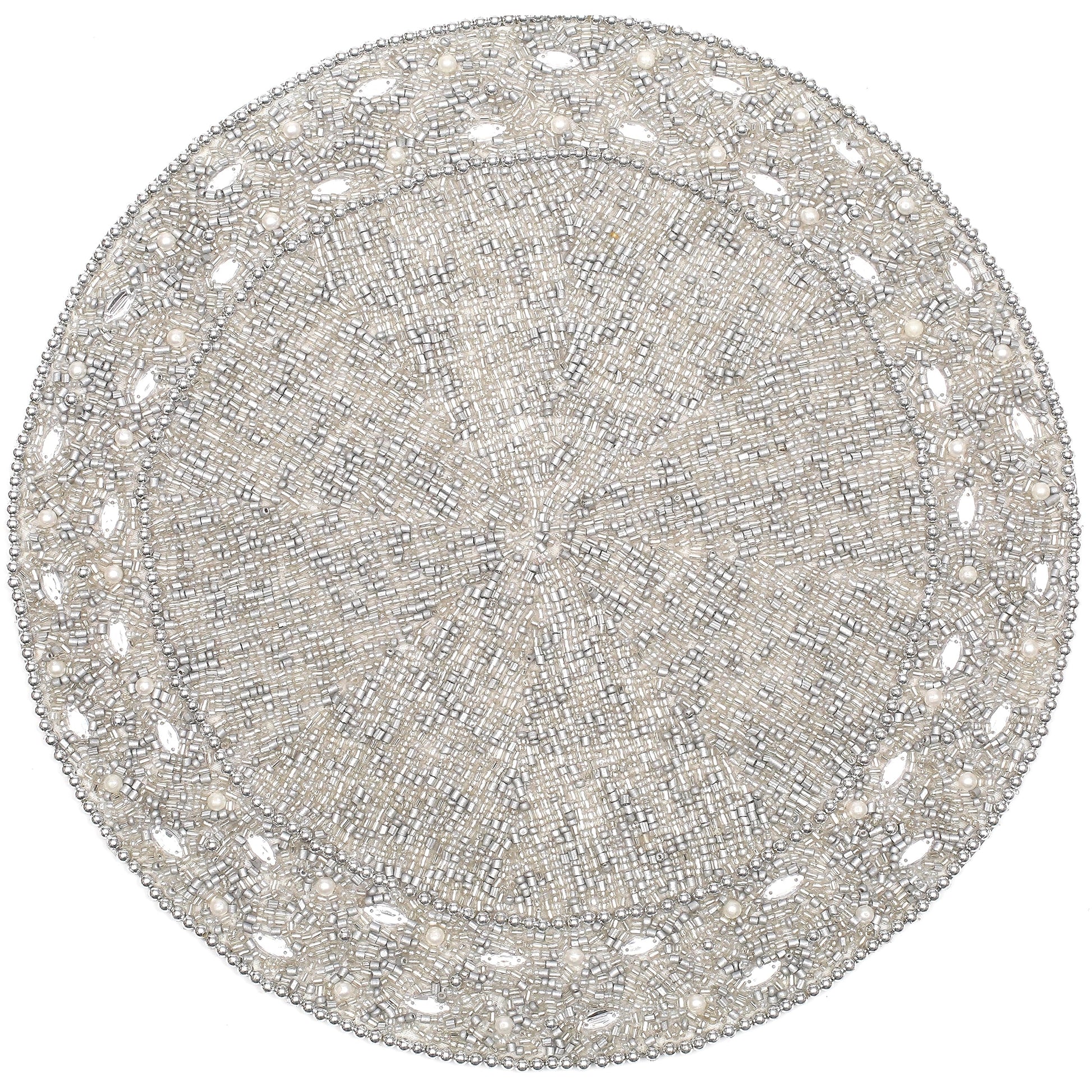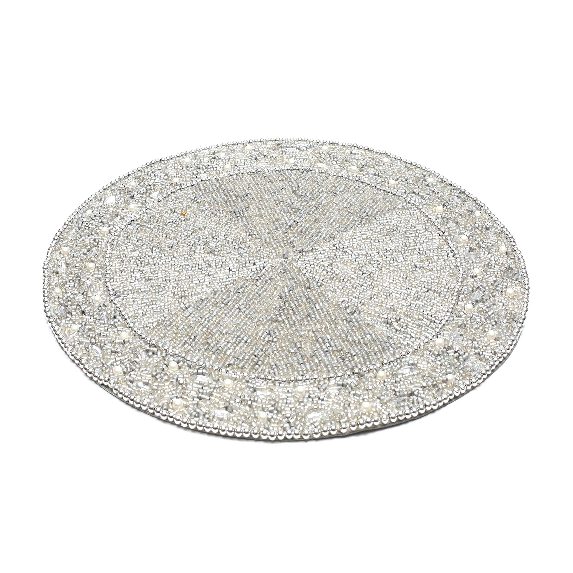 13" Round Beaded Placemat - Handcrafted Glass Beads in White Silver - Luxury Dining Table Decor, Wedding & Housewarming Gift, Holiday Use Pack of 1 by ALPHA Living HOME