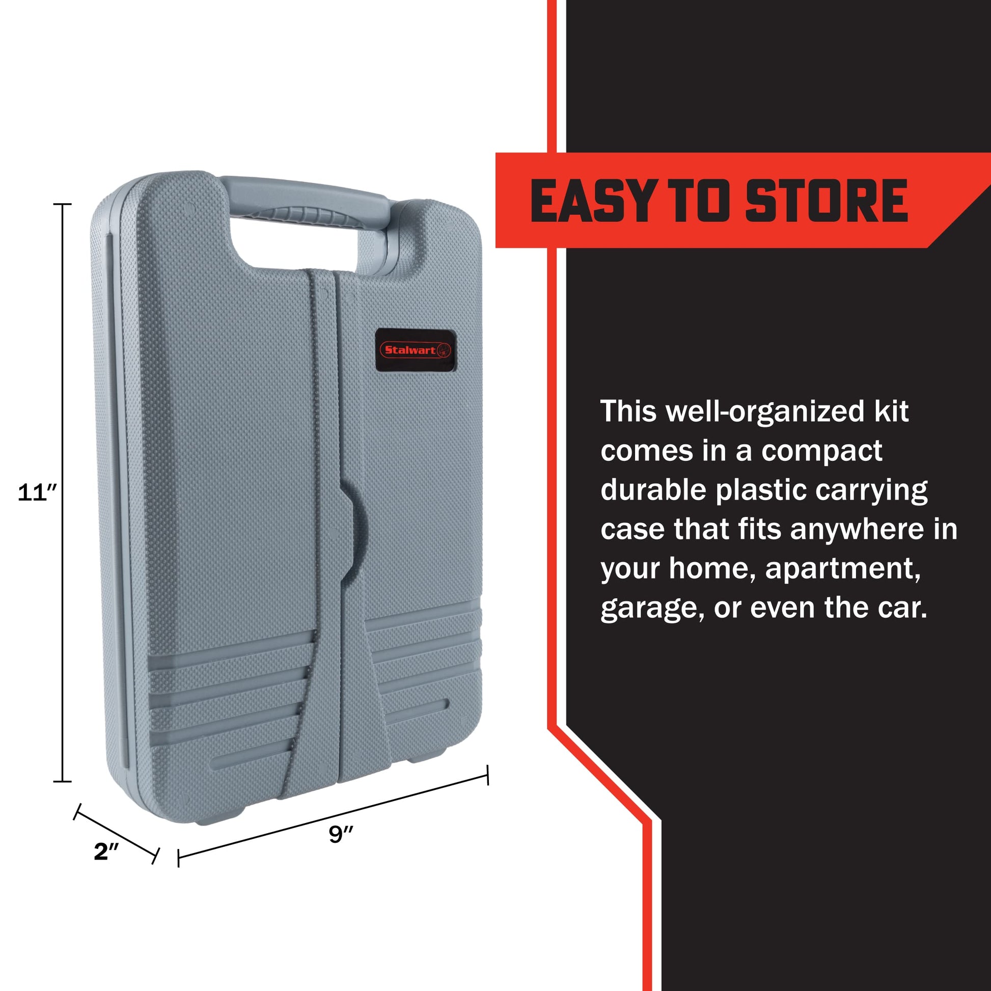 The 130-Piece Tool Kits by Stalwart come with all the first home essential tools you'll need for home improvement and DIY projects. This portable tool box set comes in a compact durable plastic carrying case that fits anywhere in your home, apartment, garage, or even the car. The tool kit for home includes 2 eight-piece Allen wrench sets, a claw hammer, a ratcheting screwdriver, needle nose pliers, and other house essentials for new home improvement projects. Whether it’s tightening screws on bikes, fixing leaking faucets, or hanging up picture frames, these tools for men and women will give you what you need to tackle any project. Stalwart, for tools that are Smart, Strong, and Secure. Important: Stalwart is committed to providing the consumer with the absolute best price and value on our entire line of products. Note: This is an exclusive product of Stalwart and only Tools & Home Improvement by Stalwart are guaranteed to be genuine. Avoid buying counterfeit products and transacting with unauthorized sellers.