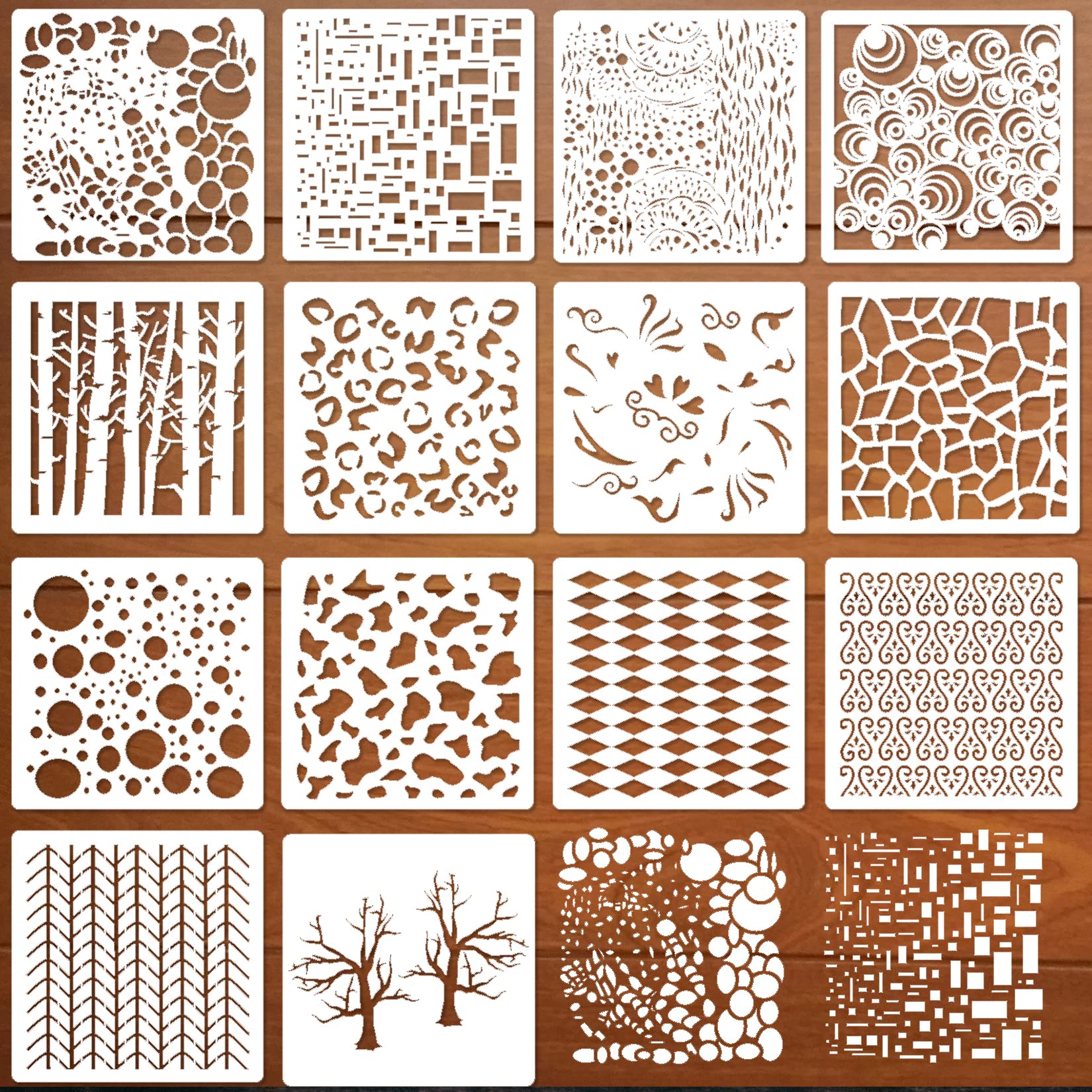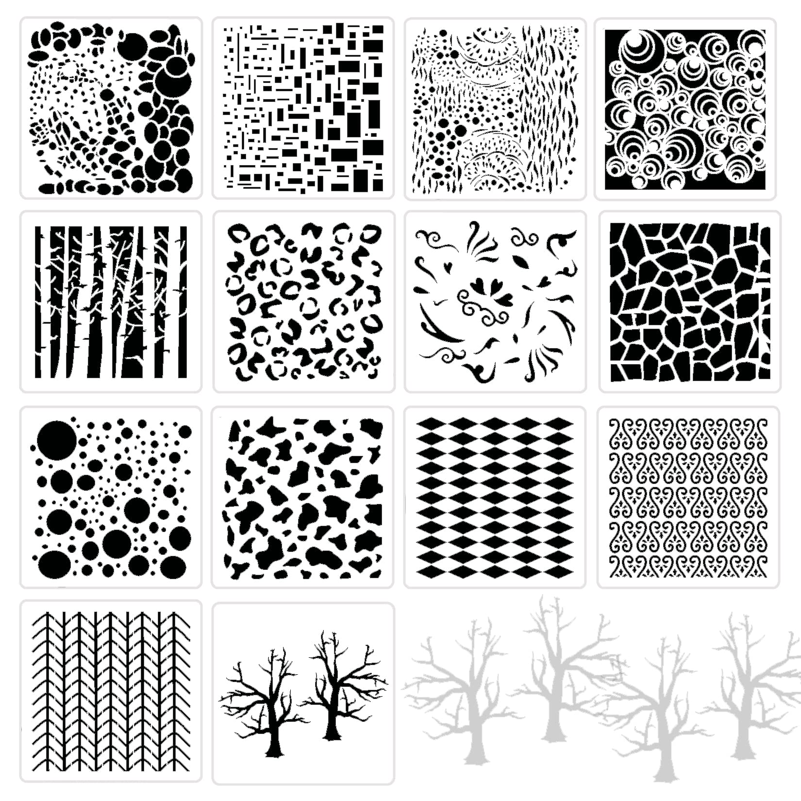 14 Pcs Layering Mixed Media Stencils Leopard Diamond Spirals Cubist Templates Geometric Patterns Stencils for Painting on Walls Canvas DIY Craft Scrapbooking Stamp Decor Card Making (6x6inch)