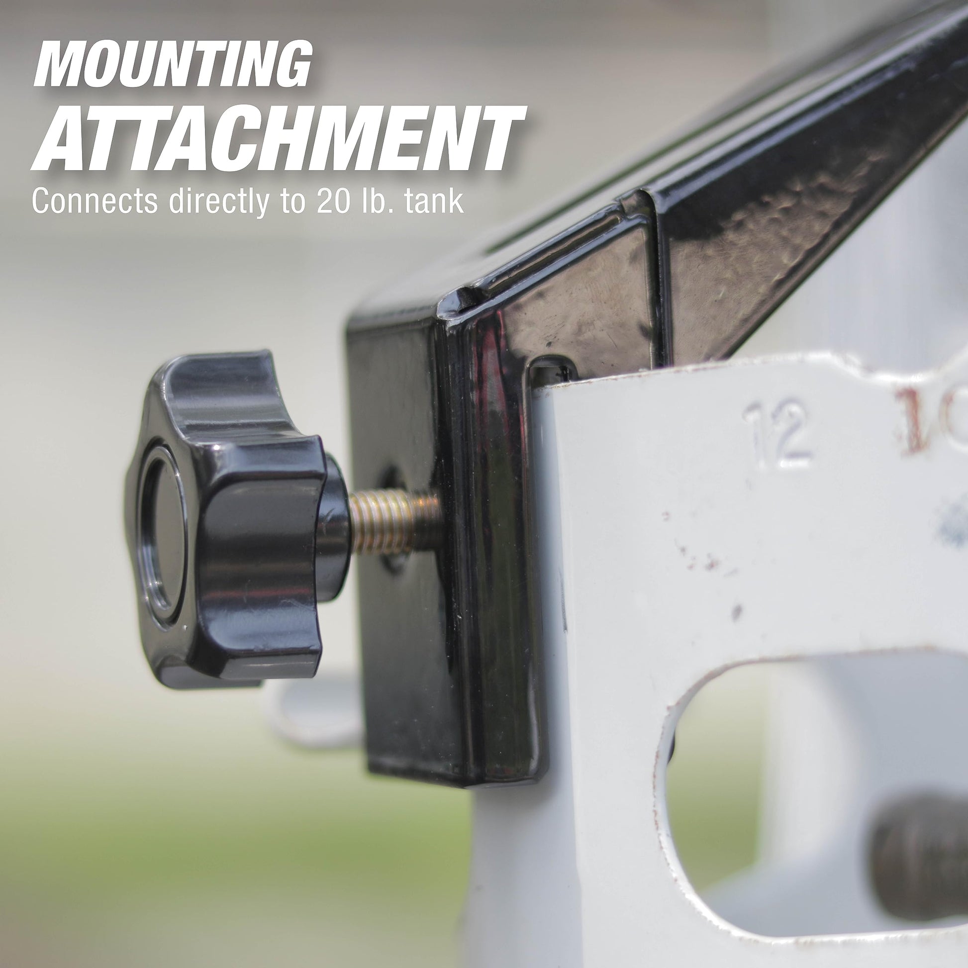 • Single burner radiant propane heater mounts directly to a 20 lb tank for easy portability
