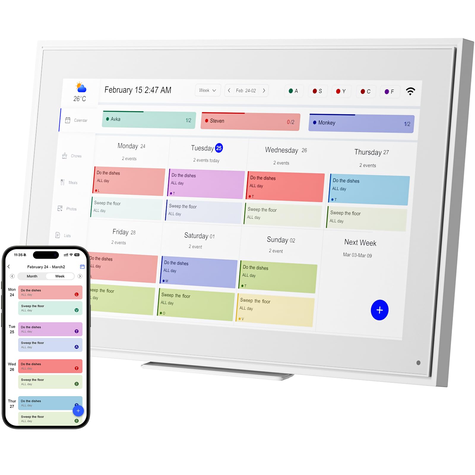 • โœ”๏ธ๐ˆ๐ฆ๐ฉ๐ซ๐ž๐ฌ๐ฌ๐ข๐ฏ๐ž ๐…๐ž๐š๐ญ๐ฎ๐ซ๐ž๐ฌ & ๐„๐š๐ฌ๐ฒ ๐ญ๐จ ๐’๐ž๐ญ-๐”๐ฉ/๐€๐ฎ๐ญ๐จ-๐’๐ฒ๐ง๐œ:Seamless calendar synchronization,Just plug in the device, connect to Wi-Fi and sync your calendars.all your events will automatically populate and sync. Add events or chores directly on the device or use the free to download mobile app.ensuring your family stays organized and no tasks are missed. Compatible with icloud Calendar, Google Calendar, Outlook Calendar, Cozi, and Yahoo,easying management and sharing of your schedule across all your devices.Authorize additional devices for even greater convenience.