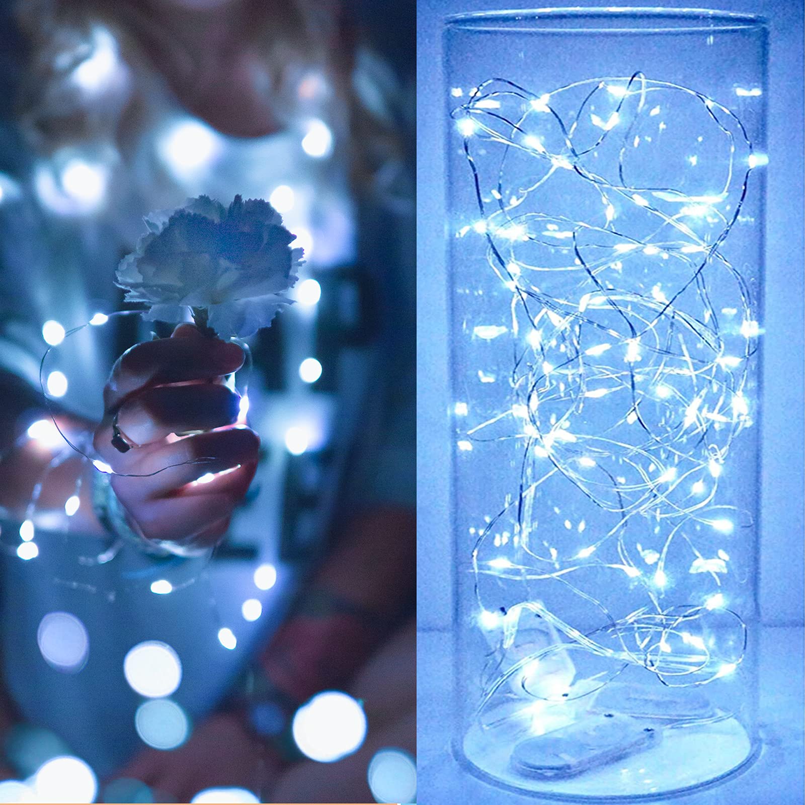• ✨Easy To Shape - String lights with flexible and extra thin but sturdily built silver wires, the led string fairy lights can be easily bend, twist and mould into any shapes that you desire. Perfect to decorate wedding, party, Christmas, jars, vases, wine bottles, planting, etc.