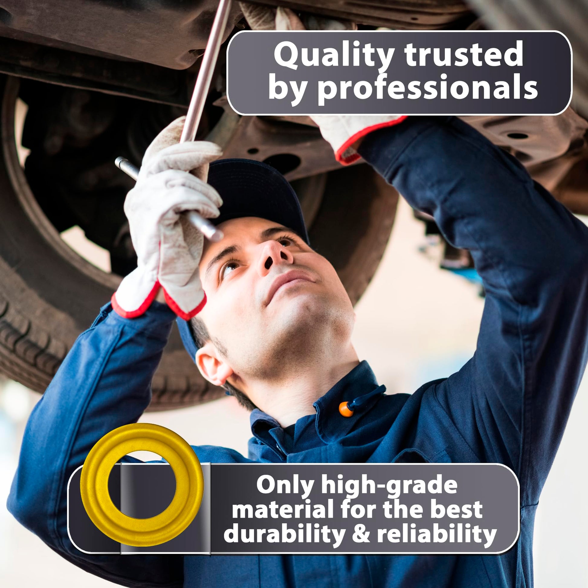We all know the anxiety and constant double checking for leaks after every oil change. But the solution is here: we are proud to present our durable long lasting and tight sealing oil pan drain plug gasket kit.