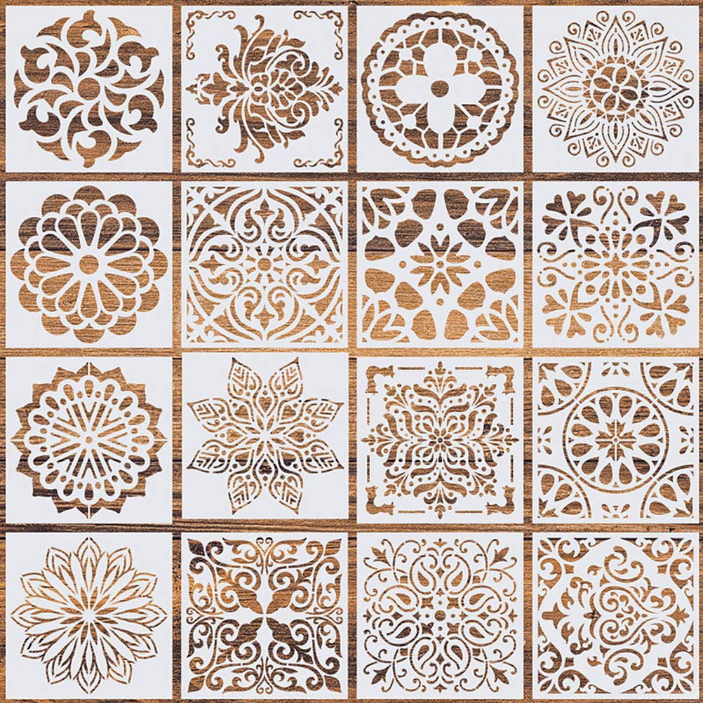 16 Pcs (6 x 6 Inch) Reusable Stencils, Mandala Stencils Mandala Dot Painting Templates Stencil for Painting Art Scrapbook (white-16pcs)