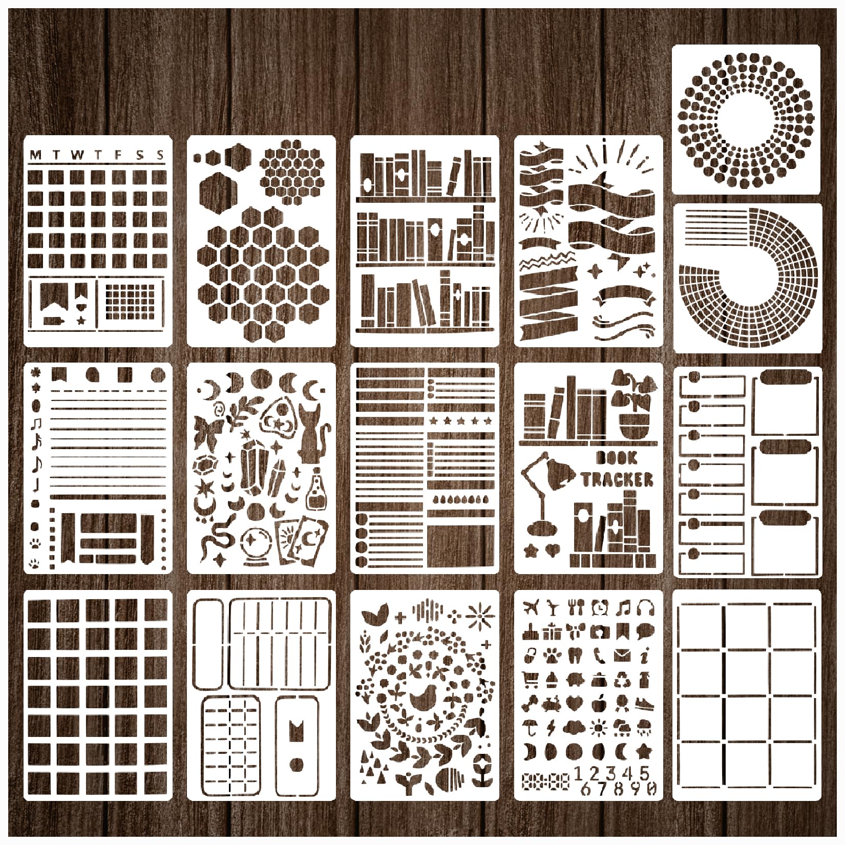 16 Pieces Journal Stencils for Dotted Journals Supplies, Happy Planner Stencils for Journaling DIY Drawing Templates Accessories Kit for Notebook Cards Scrapbook (16 Journal)