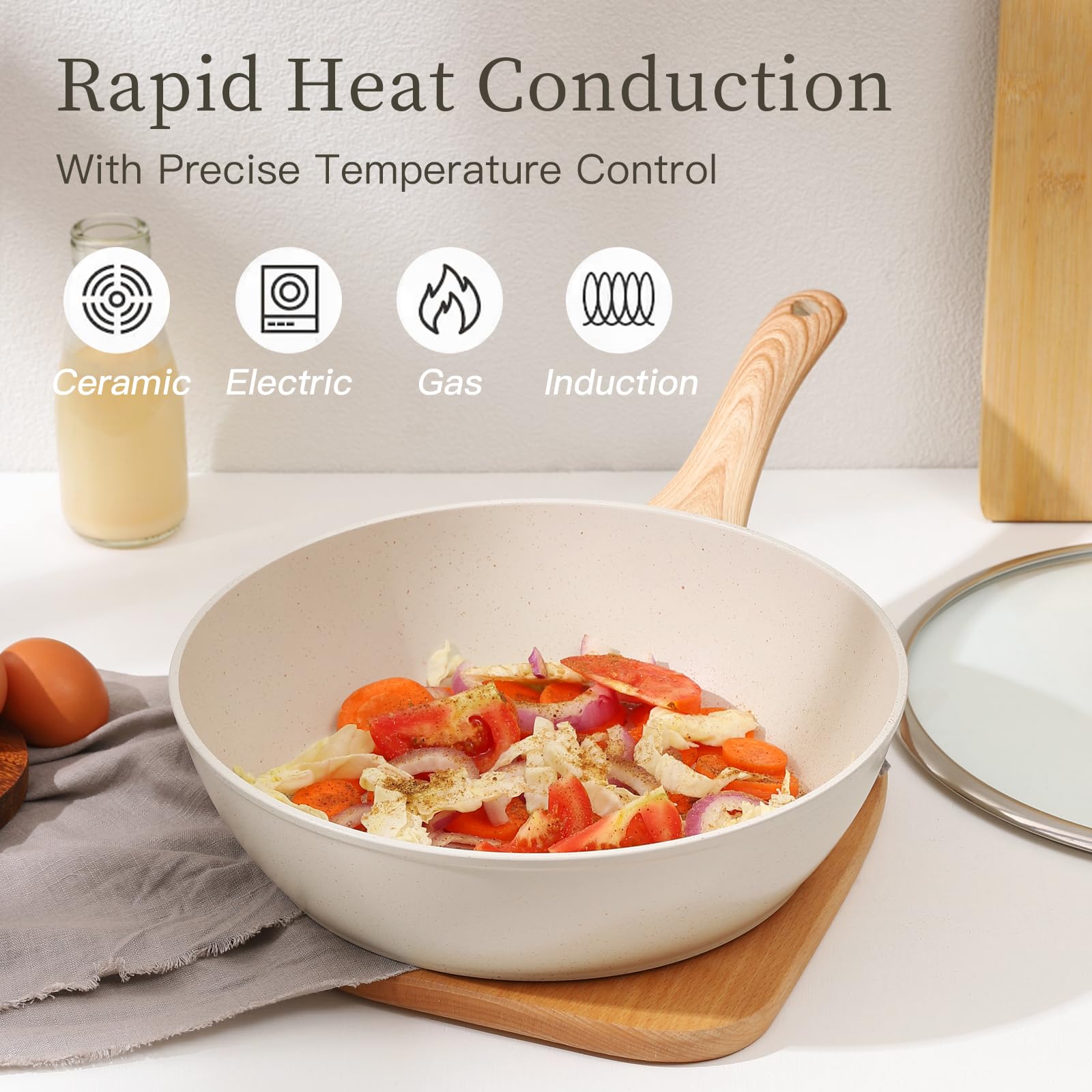 • 【 Rapid & Even Cookware Set】nonstick cookware set with a durable aluminum core, the pot heats up quickly and provides a better and even experience