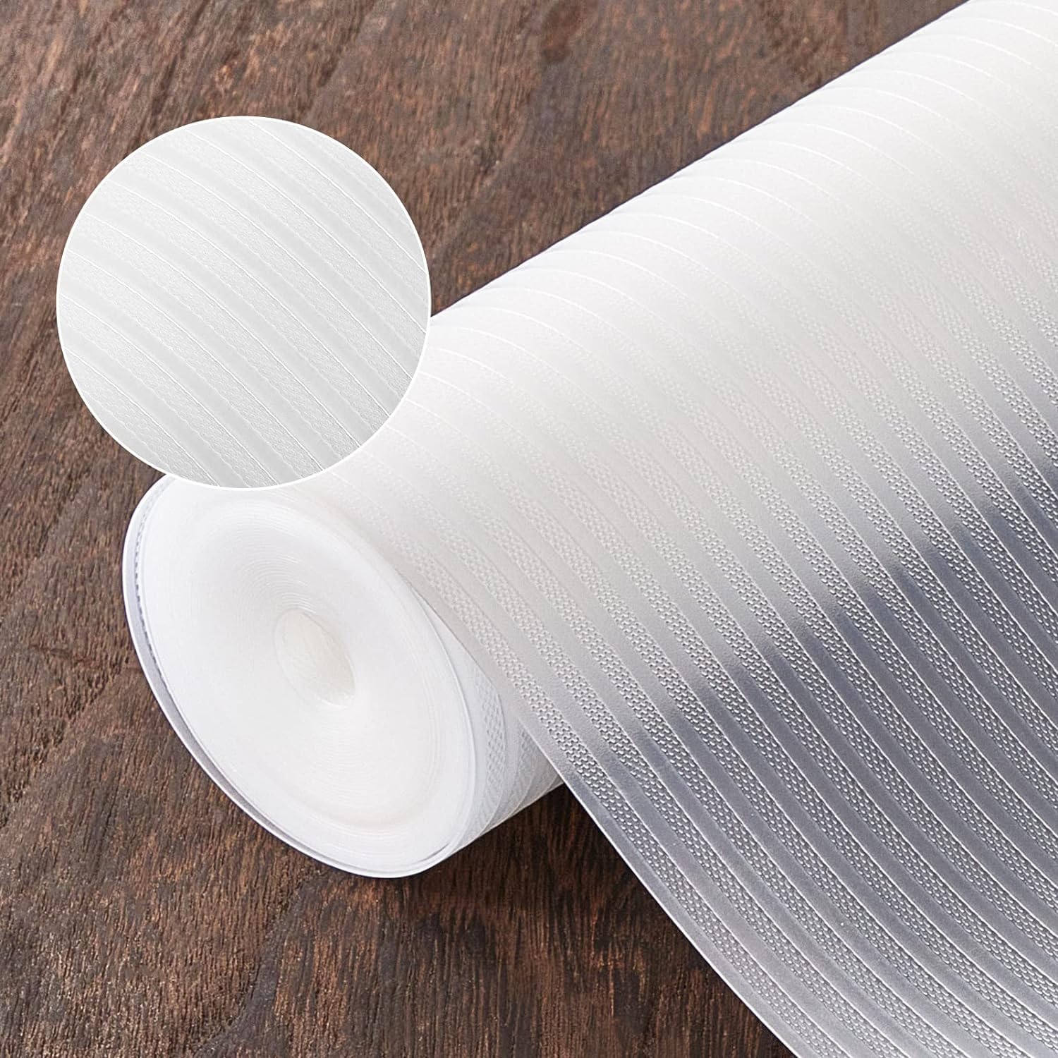 • 【REDUCE SLIPPING】: The clear shelf liner one side designed with durable long stripe pattern, which prevent items from slipping on cabinet shelves or drawer. Another non-adhesive smooth surfaced side can be easily removed and leave no residue.