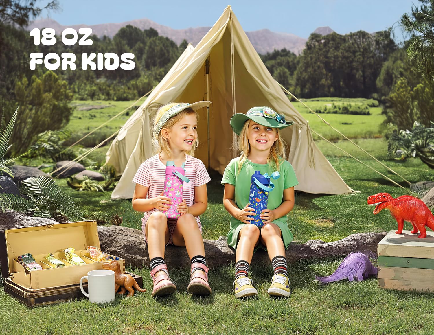 18 oz Kids Water Bottle for School: Leakproof, 2-in-1 Straw Spout Lid, BPA-Free, Easy Carry, Keep Cold 24H, Insulated Stainless Steel Cup for Backpack, Sports, Camping, Trip, Gift, Home (Cute Unicorn)