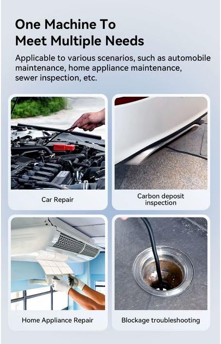 • Wide Range of applications, diagnose problems and explore unseen spaces. This can be used in pipes, cars, homes, ducts, engines, behind walls and machinery inspections