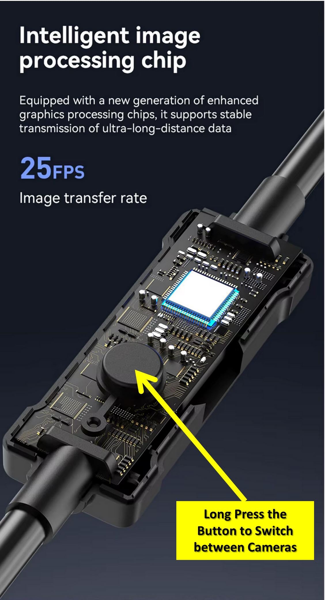 • Durable & Long-lasting Dual Camera, portable flexible snake cable 16.4FT (5M) for easy maneuvering in tight spaces. Built for durability with IP67 waterproof and dustproof construction, 9 Adjustables LED Lights, and a 7.9mm (0.31in) diameter