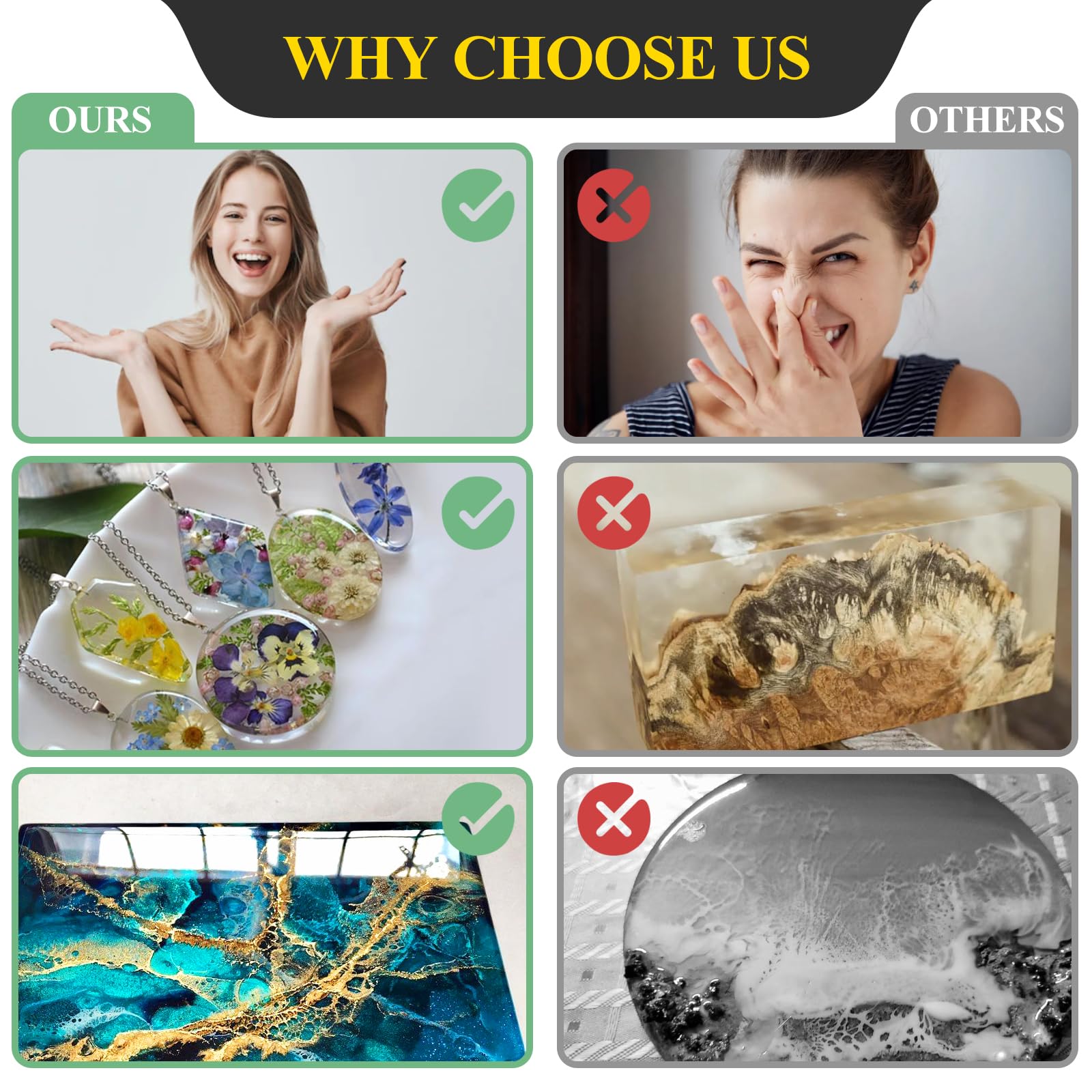 • EXTRA-STRONG GLOSS & 3×UV RESISTANT EPOXY RESIN – We as an Amazon brand,has our own R&D and manufacturing team.In order to achieve high gloss and 3×yellowing resistance finish, we all use higher grade safe and reliable raw materials.Compared to other resin kit on the market,ours hard as a rock,have a glass-like finish,long-lasting, ultra-clear appearance without yellowing.