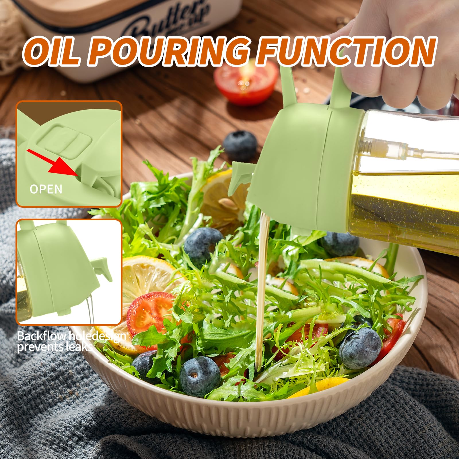 2-in-1 Oil Dispenser and Sprayer, Olive Oil Dispenser Bottle with Anti-Drip Spout, Oil Sprayer, For Salads, Air Fryer, Frying, Barbecue Green+Black 470ML/ 15.8fl.oz(2pcs)
