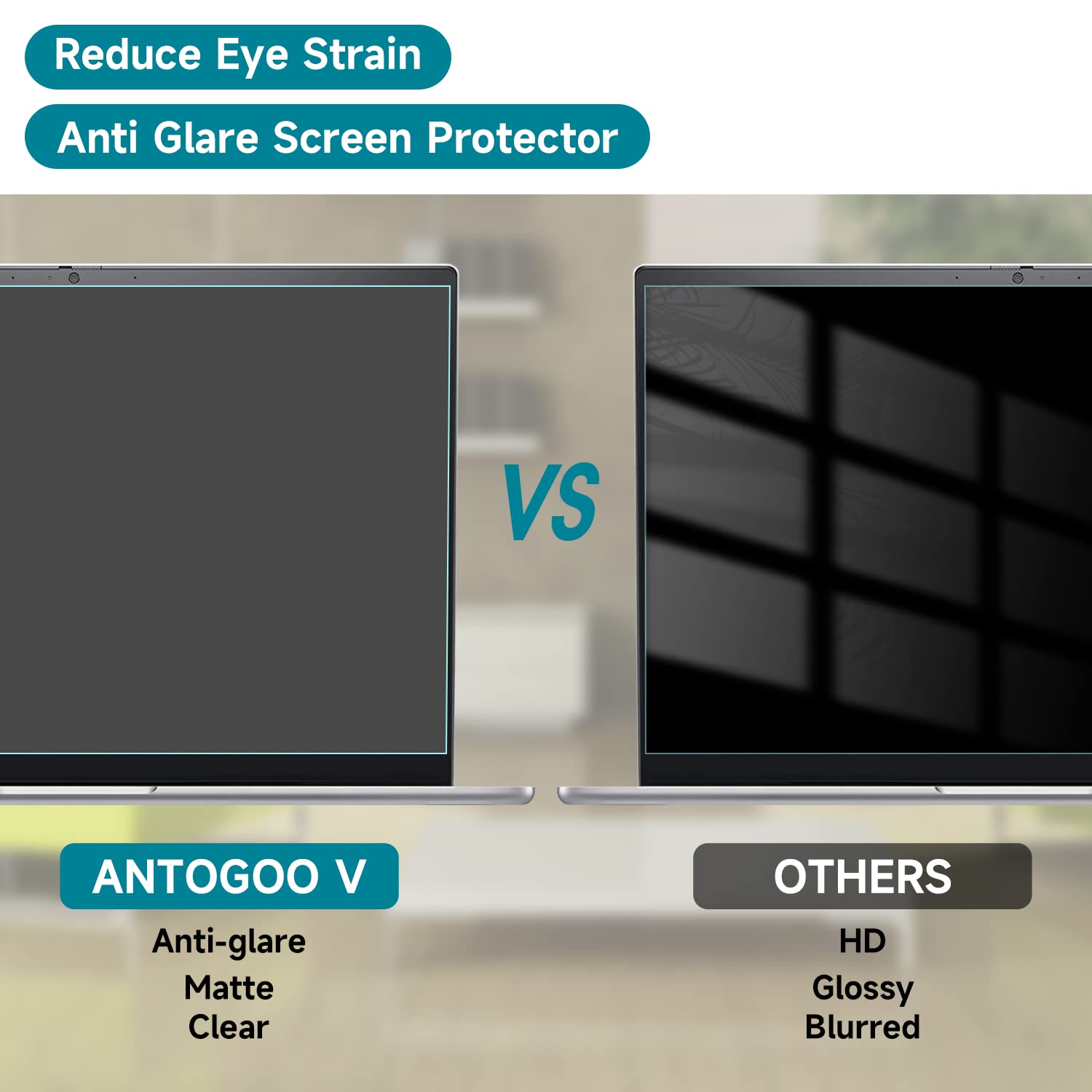 • 【Anti-Scratch and Anti-Fingerprint】ANTOGOO V anti glare computer screen cover not only reduces glare and reflection and protects your eyes, but the matte surface can also protect your computer from daily scratches, and oleophobic layer prevents fingerprints and oil residue, keeping the computer screen clean.