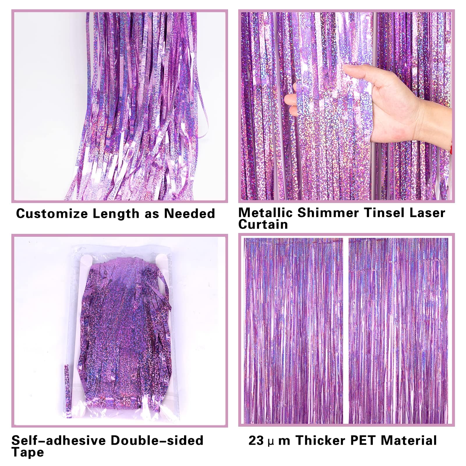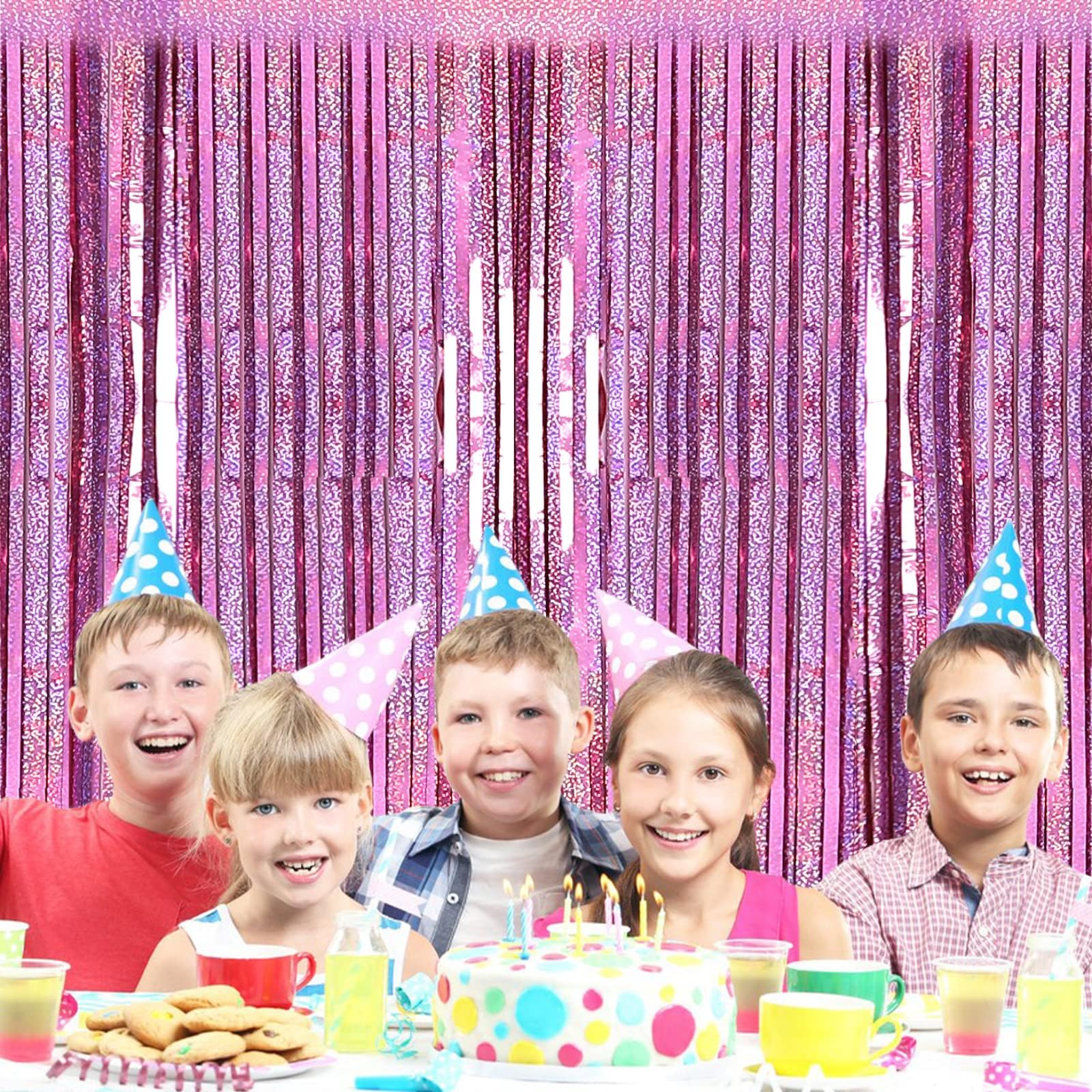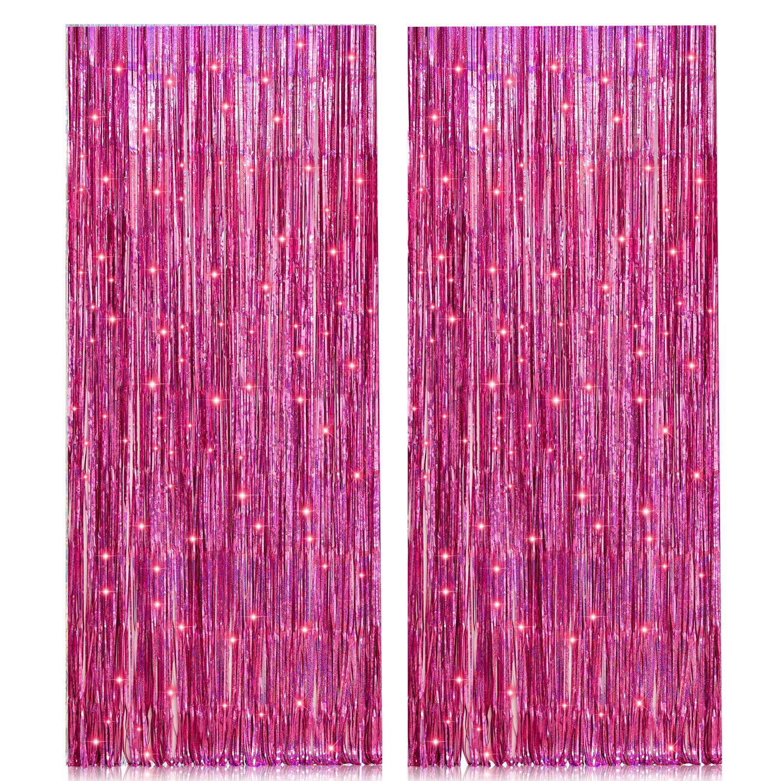 • 【Super-Value Fringe Curtain Kit】2 packs of pink laser tinsel foil fringe curtains, each one size is 3.2ft(wide)×8.2ft(drop). This foil curtain backdrop is wonderful accessory for decorating doors and walls.