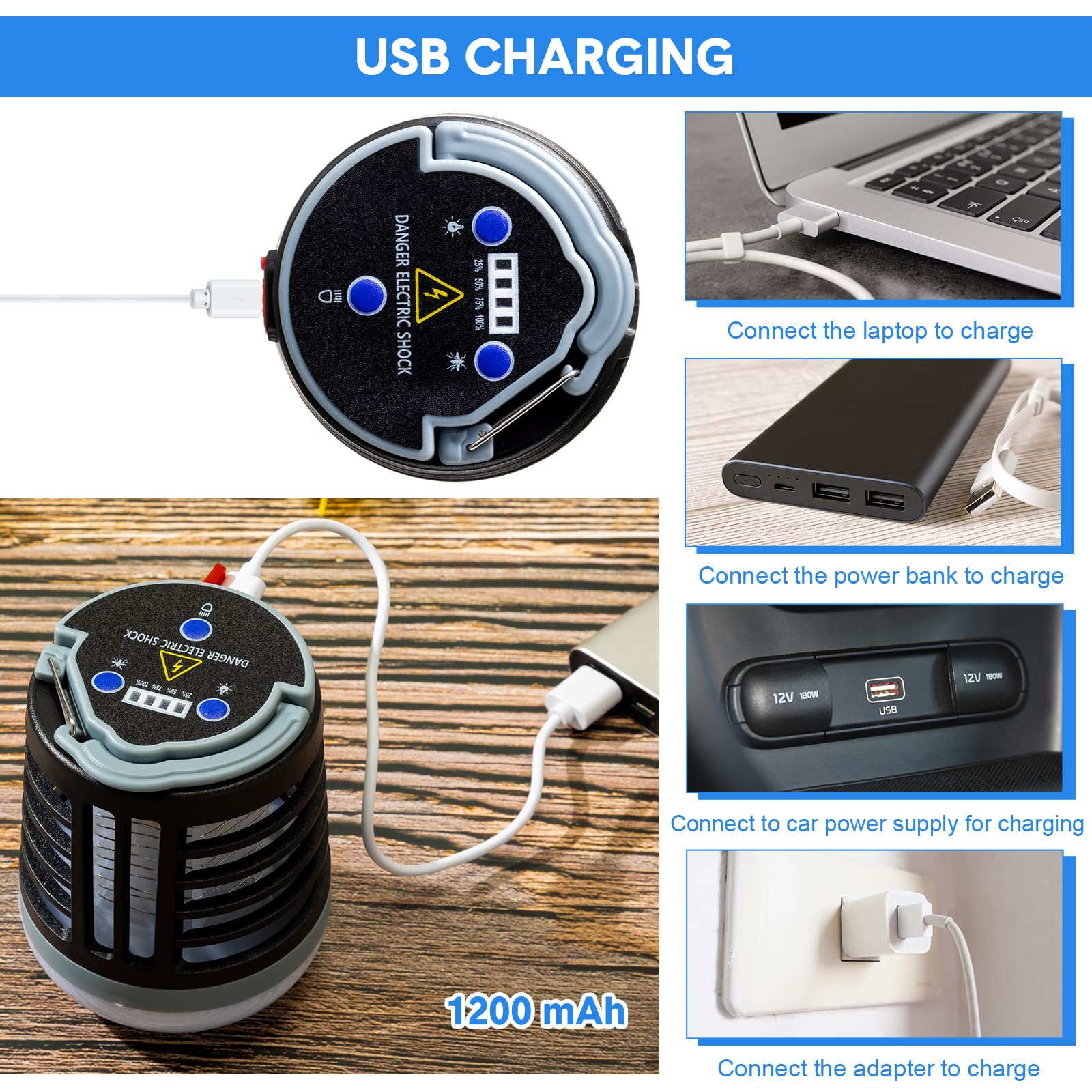 • Widely Applicable: the camping bug zapper can emit UV light to attract flies and kill them, which is an outdoor emergency flashing light as well as a good helper when you are camping; You can take it with you on camping trips, picnics, barbecues, fishing trips, hiking, climbing and sports, providing you a silence and safe environments