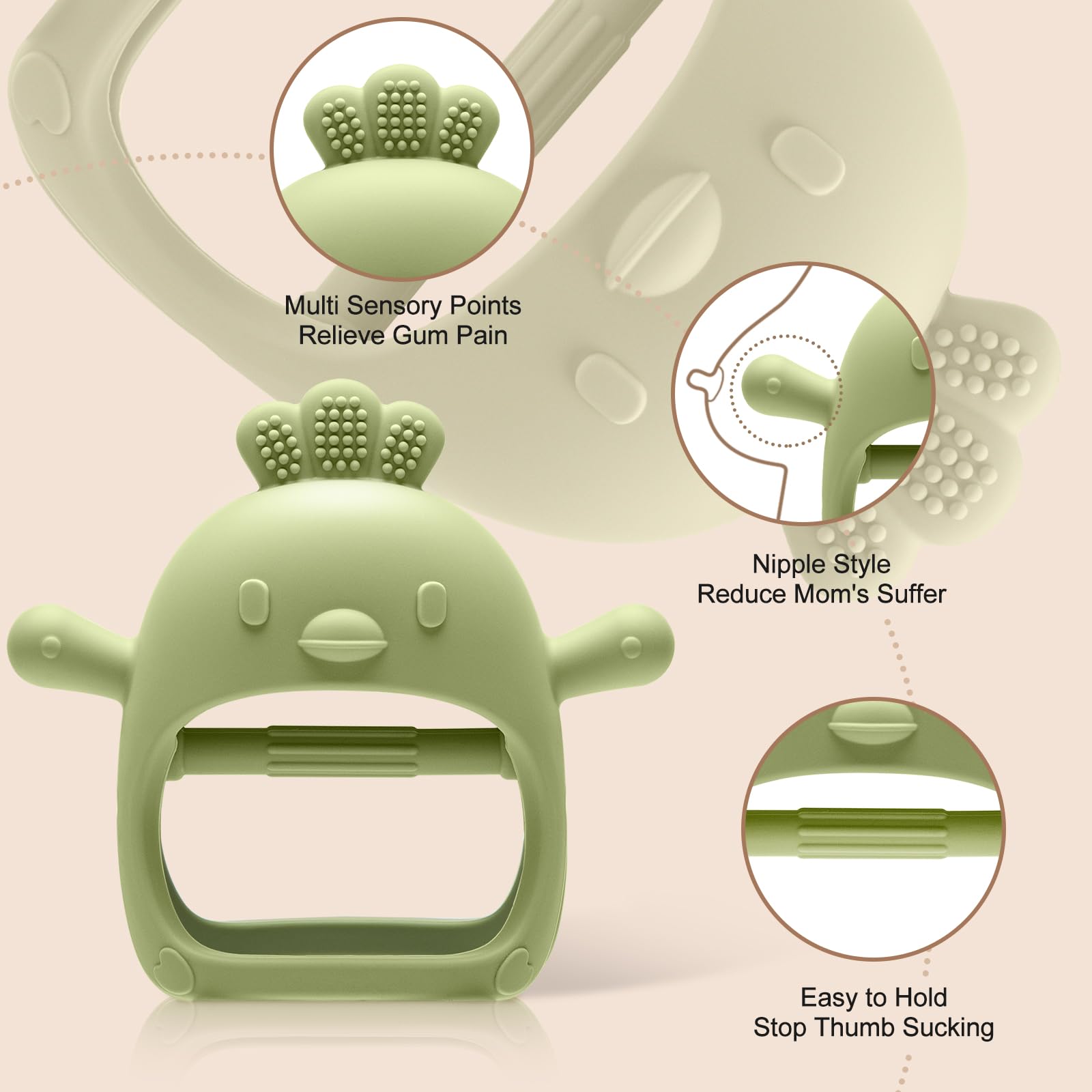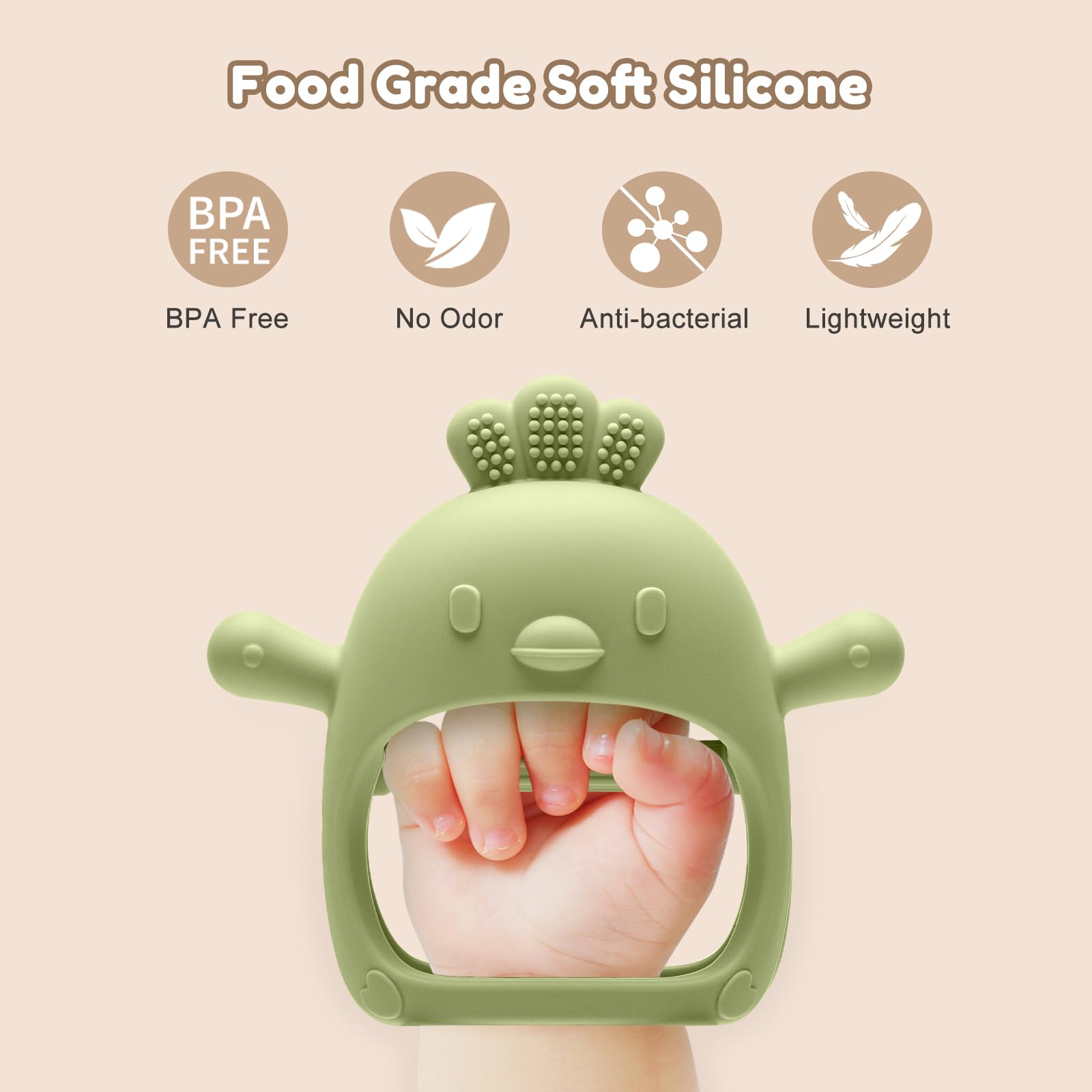 • Food Grade Teething Toy: This baby teether is made of soft silicone, BPA free and phthalate free, with no small parts, ensuring the safety of your teething baby while providing a strong and soft chewing experience