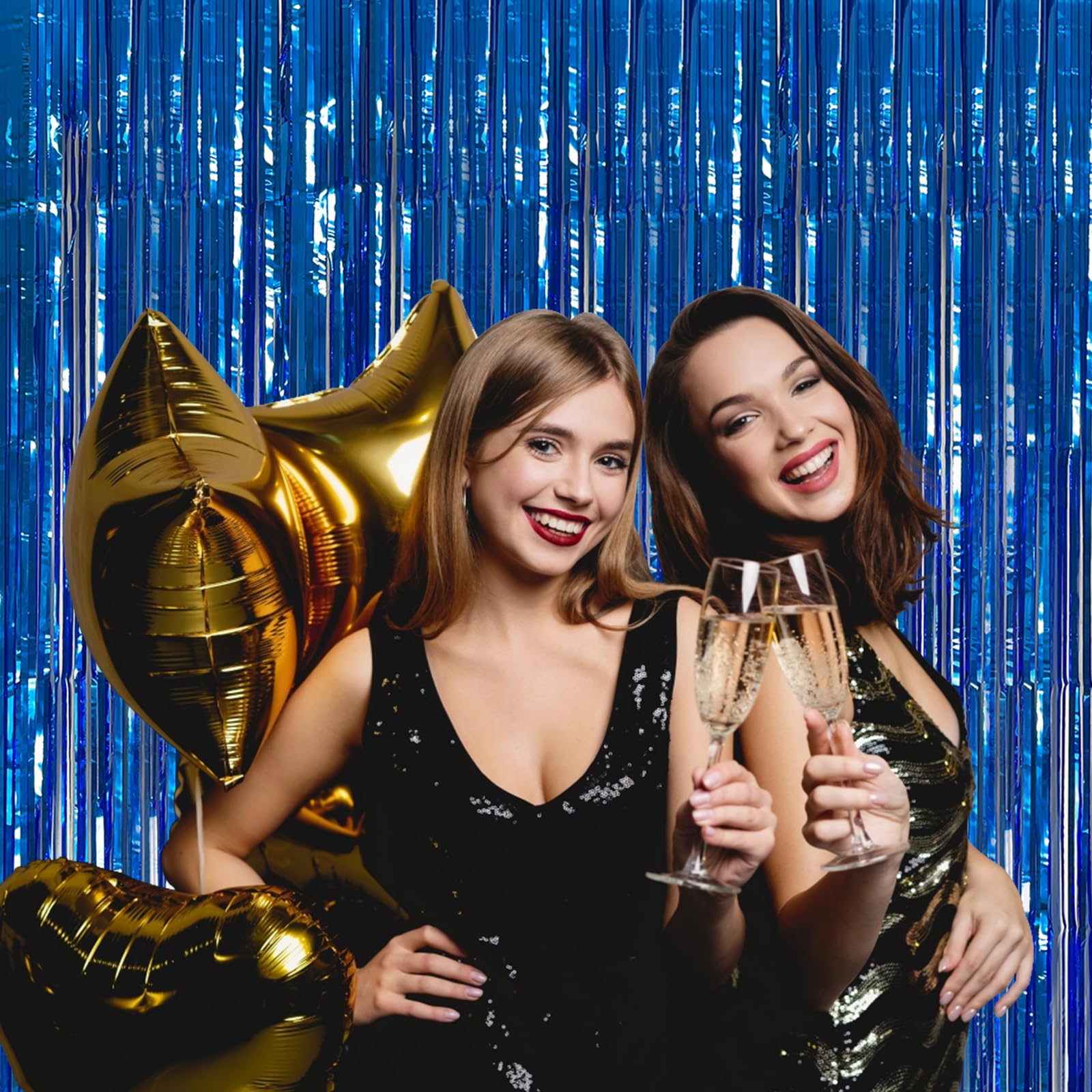 2 Pack Blue Party Decorations Ocean Party Decor Supplies Blue Party Streamers Birthday Decorations Tinsel Foil Fringe Curtains Photo Booth Props Celebration Decorations