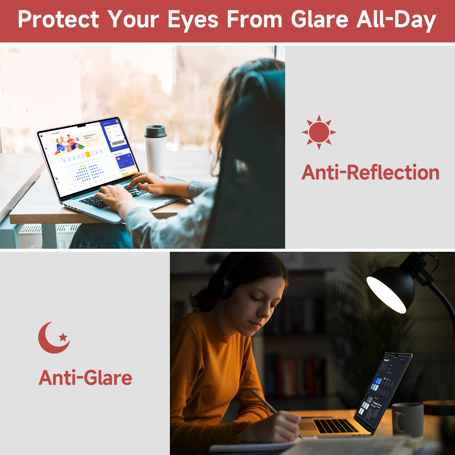 • This anti glare macbook pro 14 inch m3 screen protector is suitable for those who frequently use computers for extended periods, as well as individuals who are professional programmers, web developers, and e-commerce professionals. It's also beneficial for people with vision problems such as nearsightedness, farsightedness, and astigmatism as it can minimize glare and effectively alleviate eye fatigue and dryness, thereby protecting your vision and improving your comfort and health. Perfect for who Back to School and Off to College.