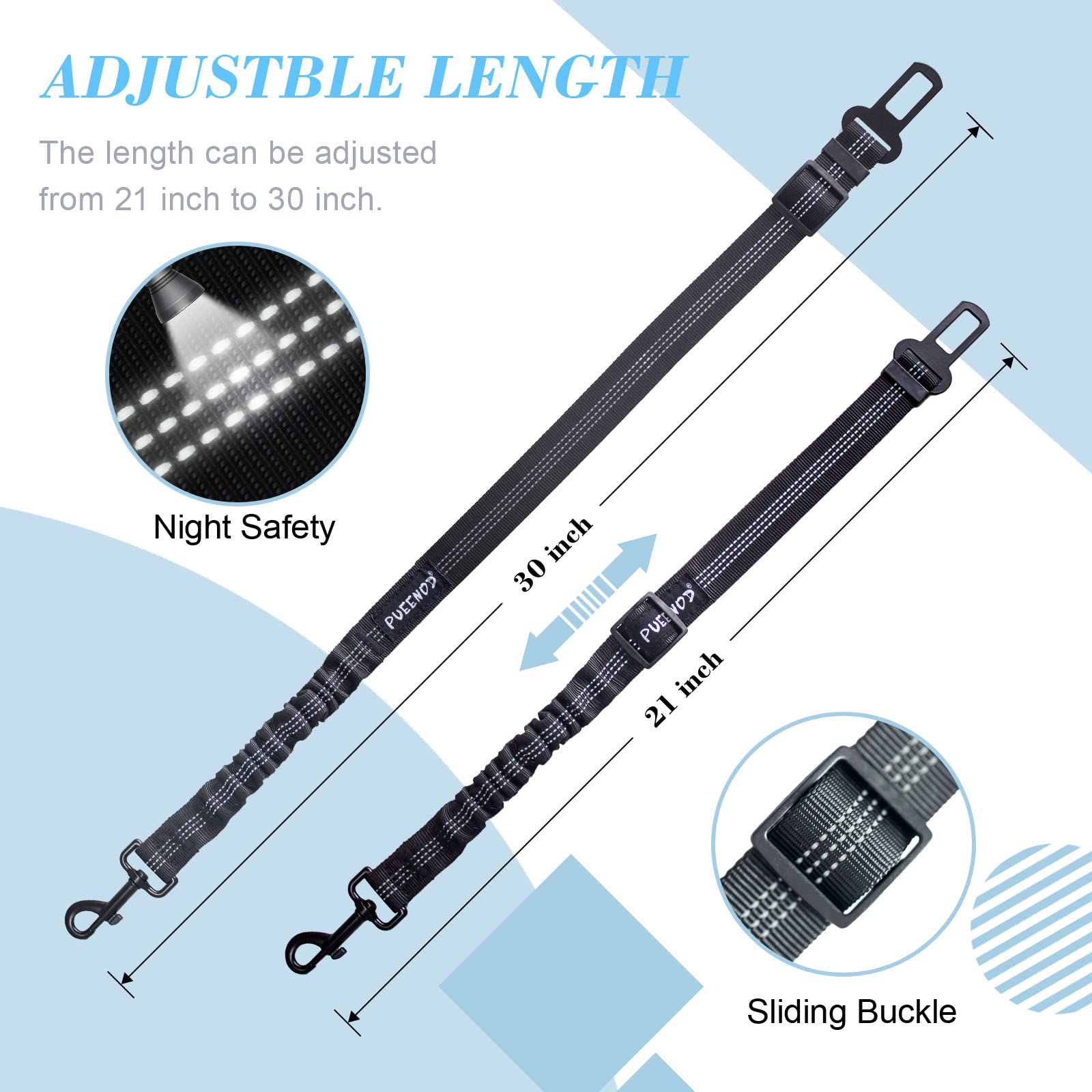 2 Pack Dog Seat Belt Adjustable Dog Car Seatbelts for Vehicle Nylon Pet Safety Seat Belt with Elastic Bungee Buffer Reflective & Durable Car Harness for Dogs