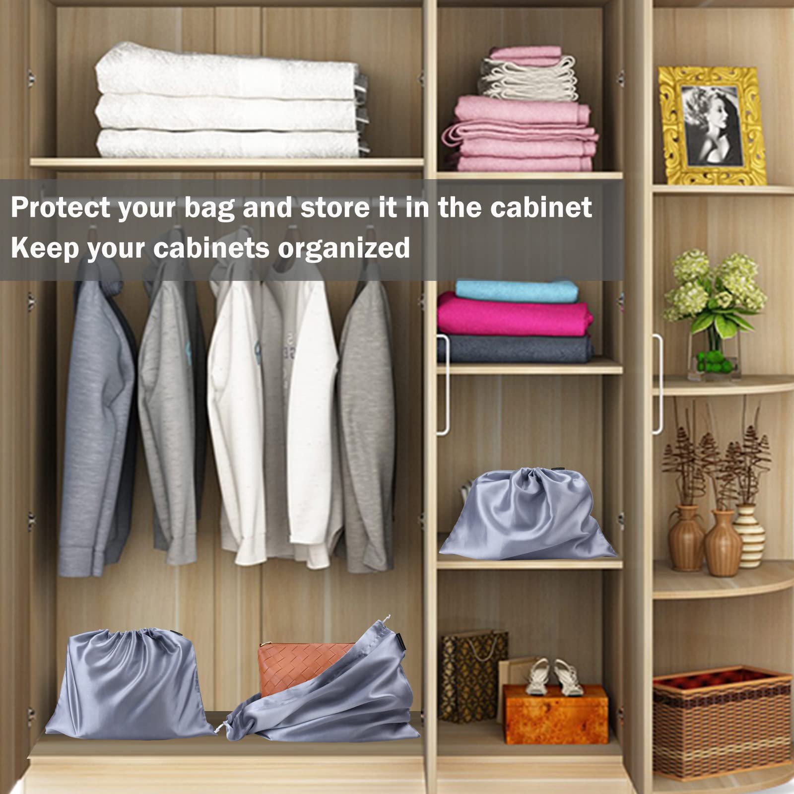 2 Pack Dust Bags for Handbags Silk Dust Cover Bag for Handbags Purses Shoes, Dustproof Drawstring Bag Travel Storage Pouch (Grey)