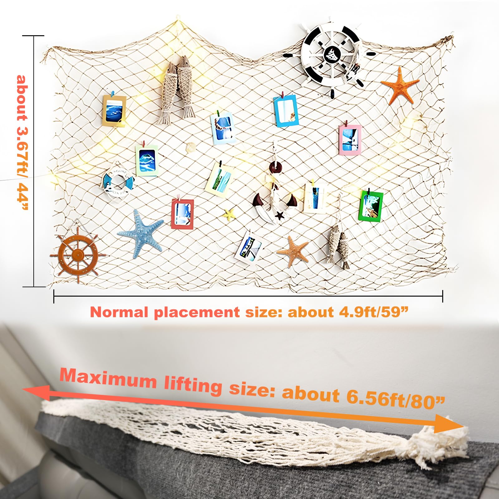 • Fish Cord Net - Natural Cotton Fish Net decorative. Fishnet decor Measures 78.7inch x 39.37inch. Great for House, party table decorations.
