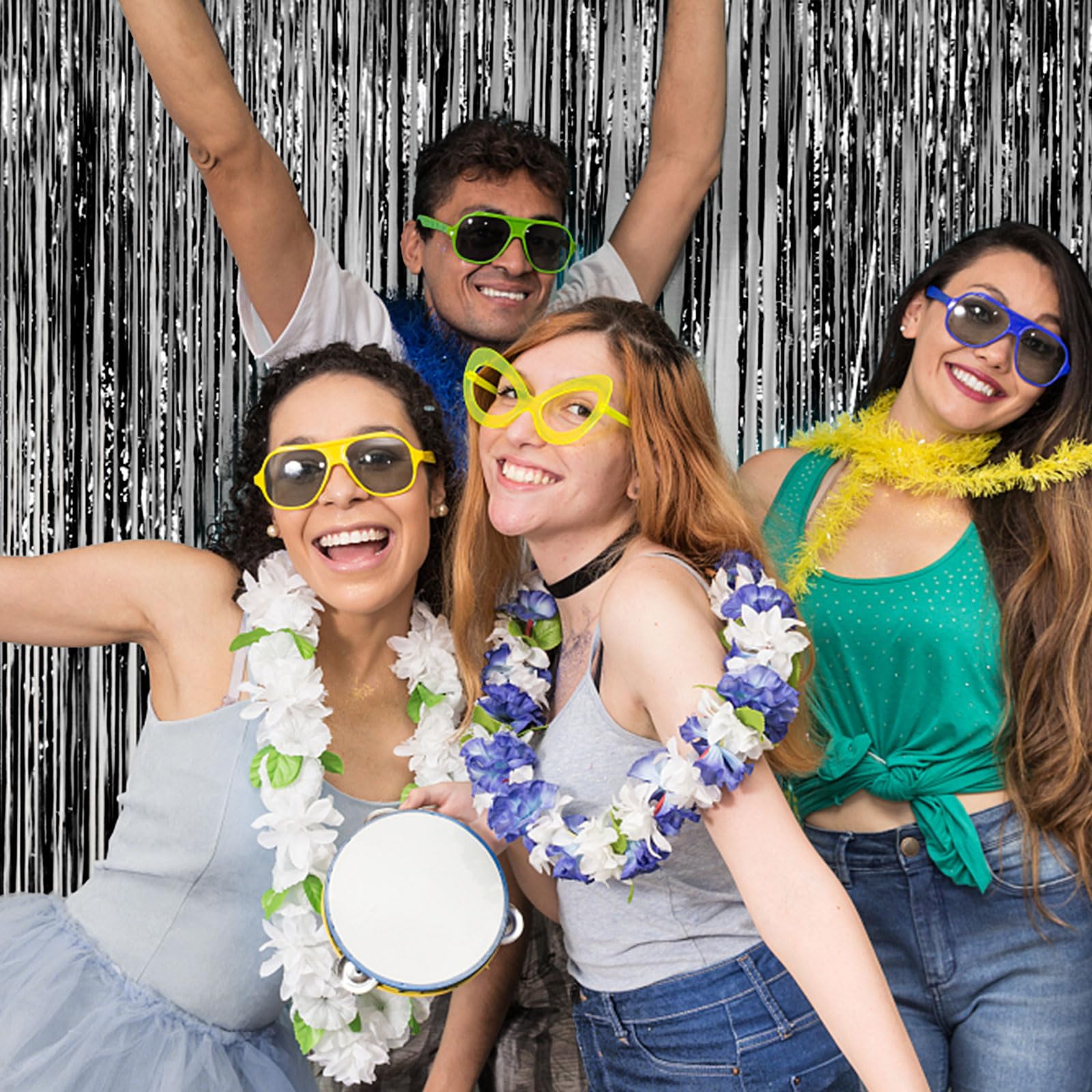 Details: 2 Pack Foil Curtain Backdrop Black Metallic Tinsel Foil Fringe Curtains Photo Booth Props for Birthday Wedding Engagement Baby Shower Bachelorette Christmas Holiday Celebration Party Decorations