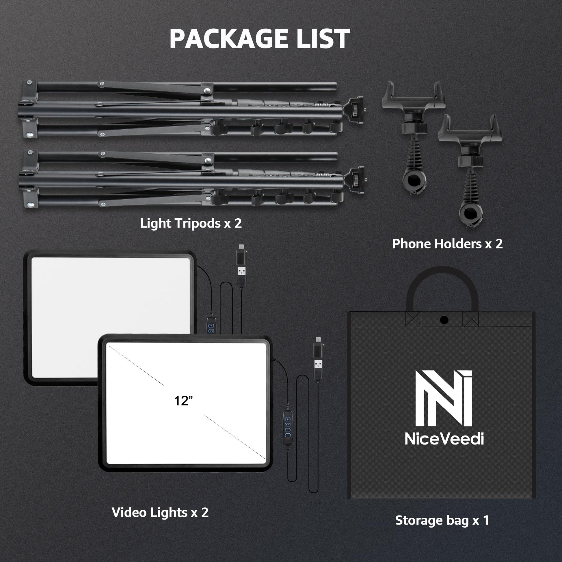 • 【Package List & Customer Service】There will be 2 LED studio light panels with cable. adjustable tripod stand for each light panel, 1 user manual, 1 storage bag, 2 USB-C adapters. Whatever issues you meet during the usage or any defects arise, rest assured that we are here to assist you.