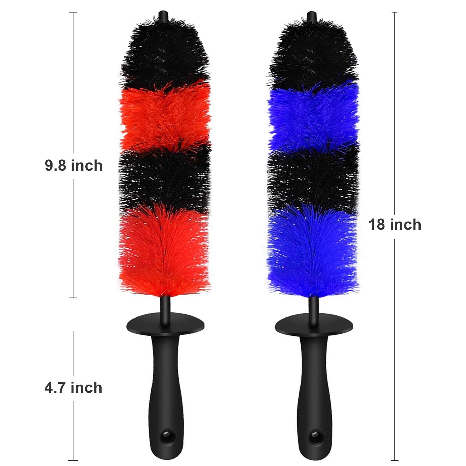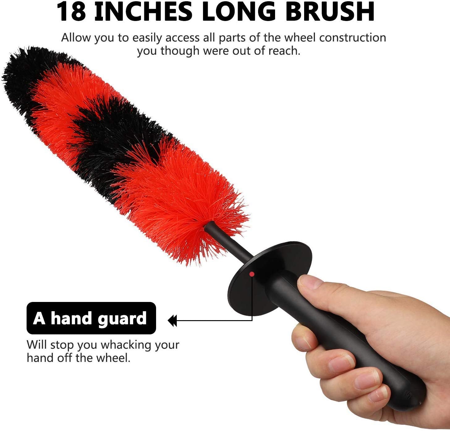 • SAVE TIME AND PROTECT YOUR KNUCKLES: The 9.8” brush head help you clean your wheels quickly. 18” long wheel brush with knuckle guard make sure you will not bang your knuckle while cleaning your wheels.