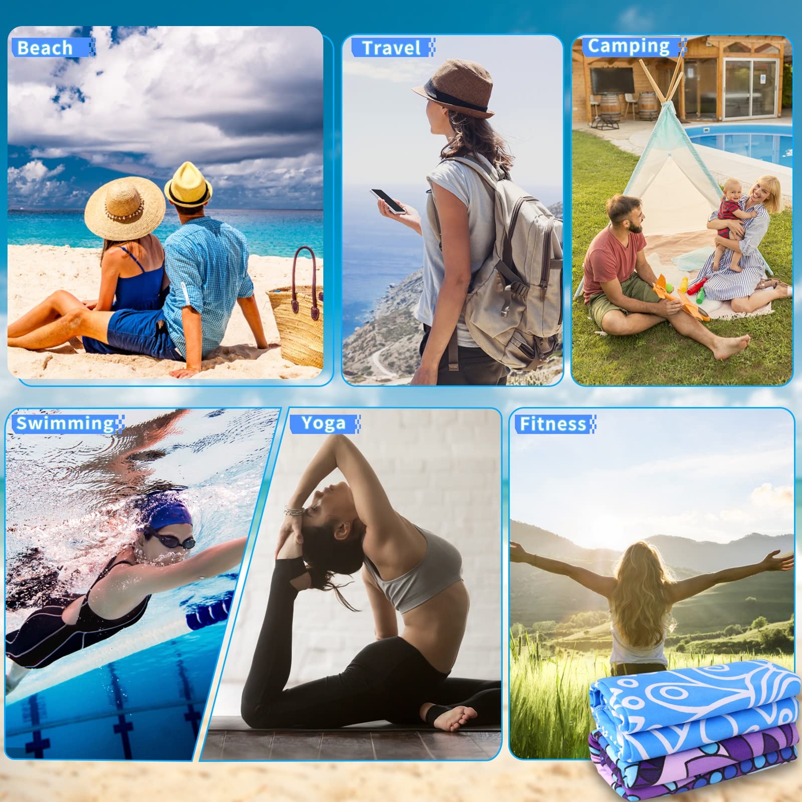 • ABSORBENT AND LIGHTWEIGHT : Microfiber beach towels contain millions of individual fibers that absorb up to 5 times their own weight. Save yourself the embarrassment and cold after bathing or swimming in the pool or beach. You can rest or wrap your body on it, or dry easily from head to toe. We feature compact fabric that you can easily fold to the perfect size to maximize luggage space and pack other items for easy portability