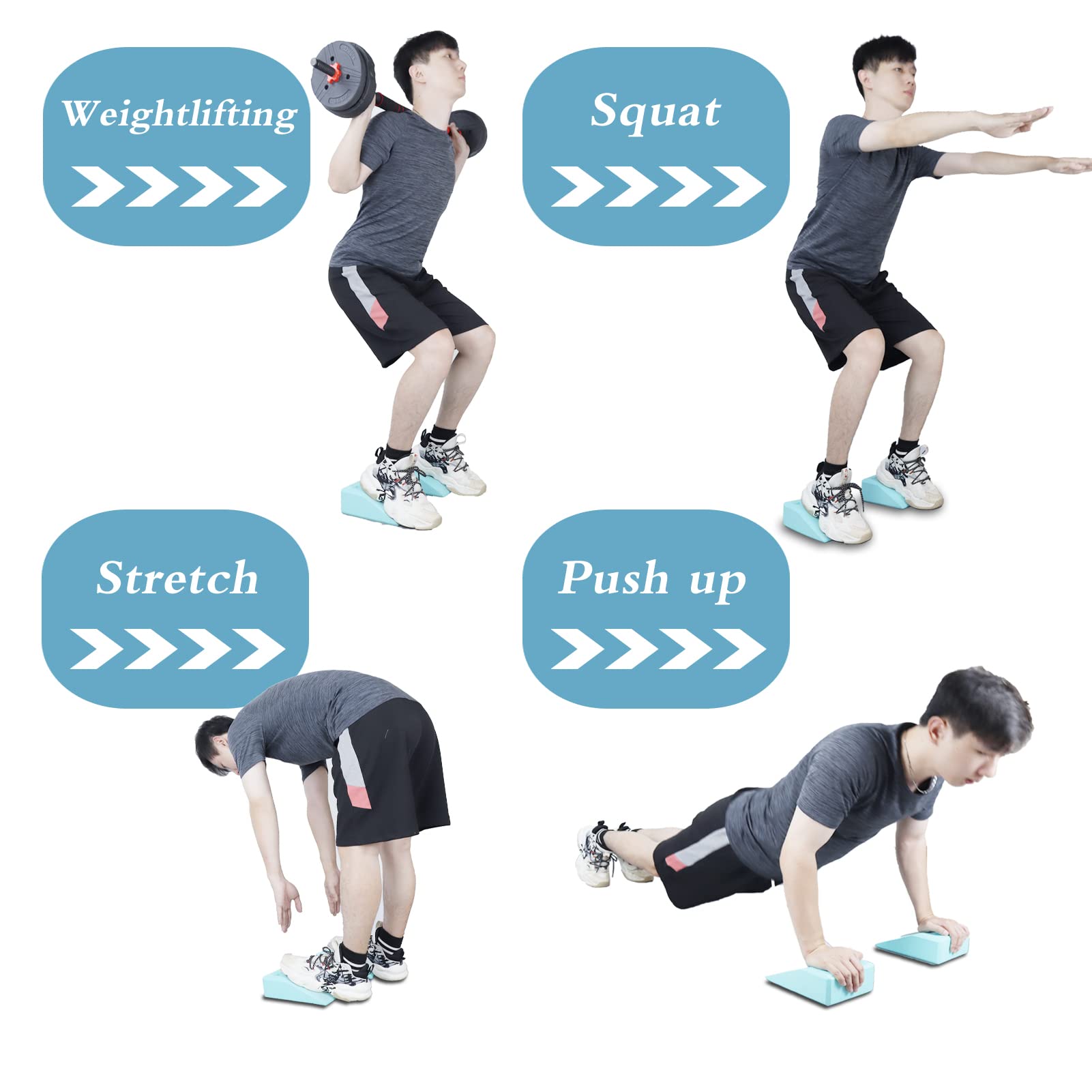 • PERFECT FOR ALL EXERCISE: Our Calf Raise Wedge Block Set is perfect for Weightlifting, Yoga, Fitness, Squat, Pushup, Leg Correction, Pilate and other Daily Exercise. It can help you enhance warm ups, improve flexibility, strengthen and tone muscle.