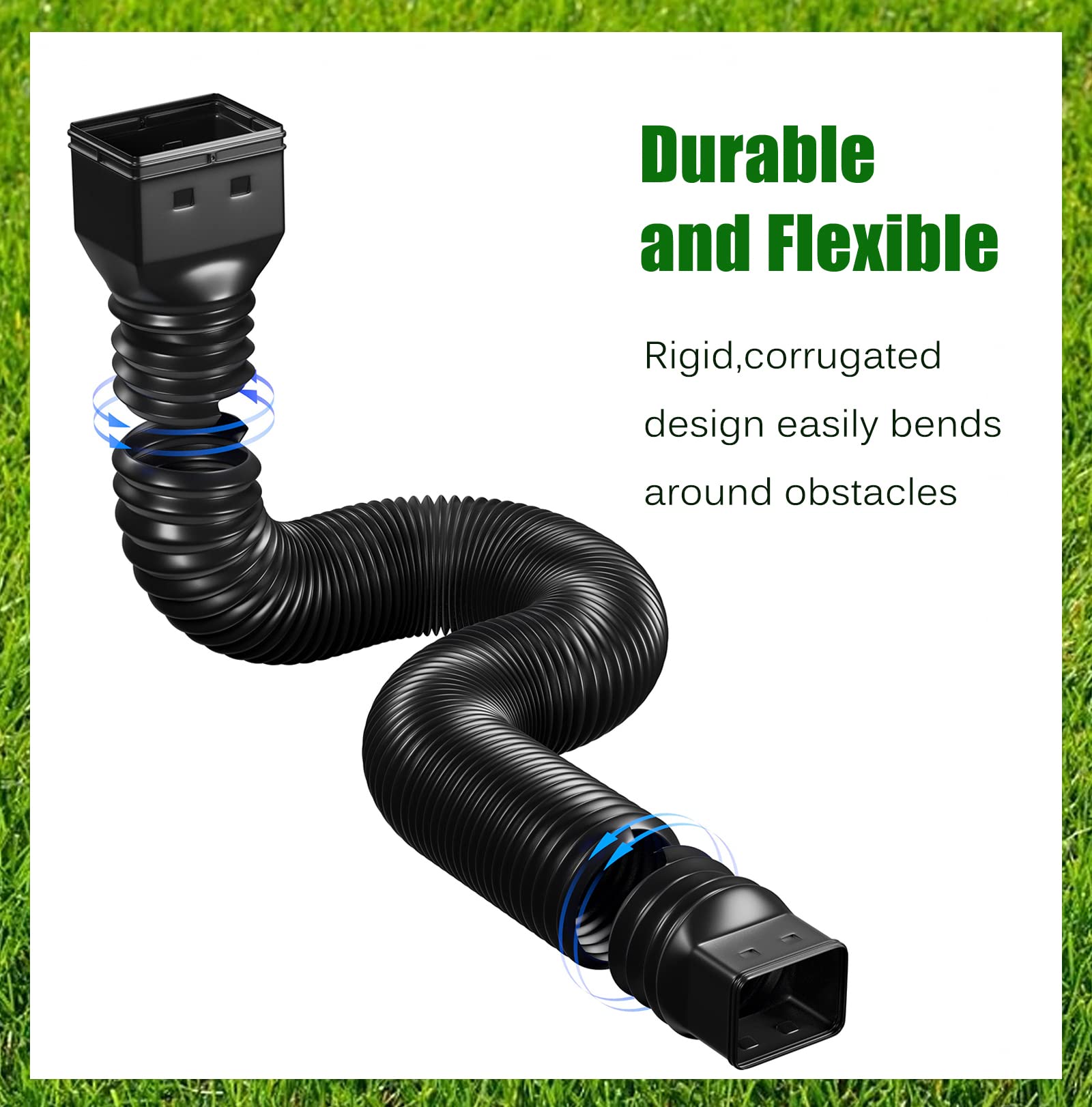 • EASY-USE:No need for professional installation!Gutter extender easily bends and expands to whatever shape you need,Thick Material is flexible to be able to direct the water where you need it.