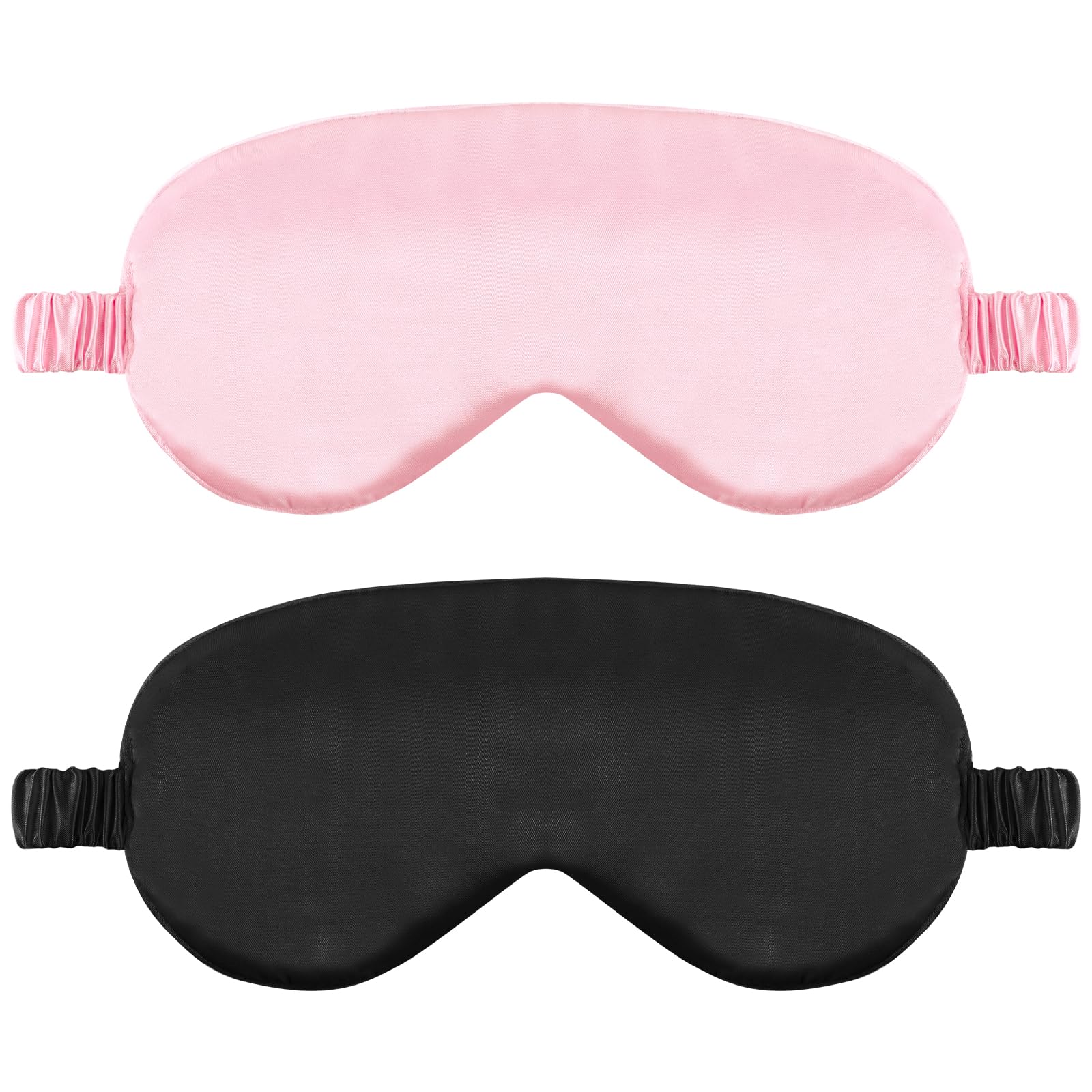 2 Pack Sleep Mask Silk Eye Mask Cover for Sleeping, Soft Satin Blindfold with Elastic Strap, Comfortable Night Sleeping Mask for Women Men (Black, Pink)