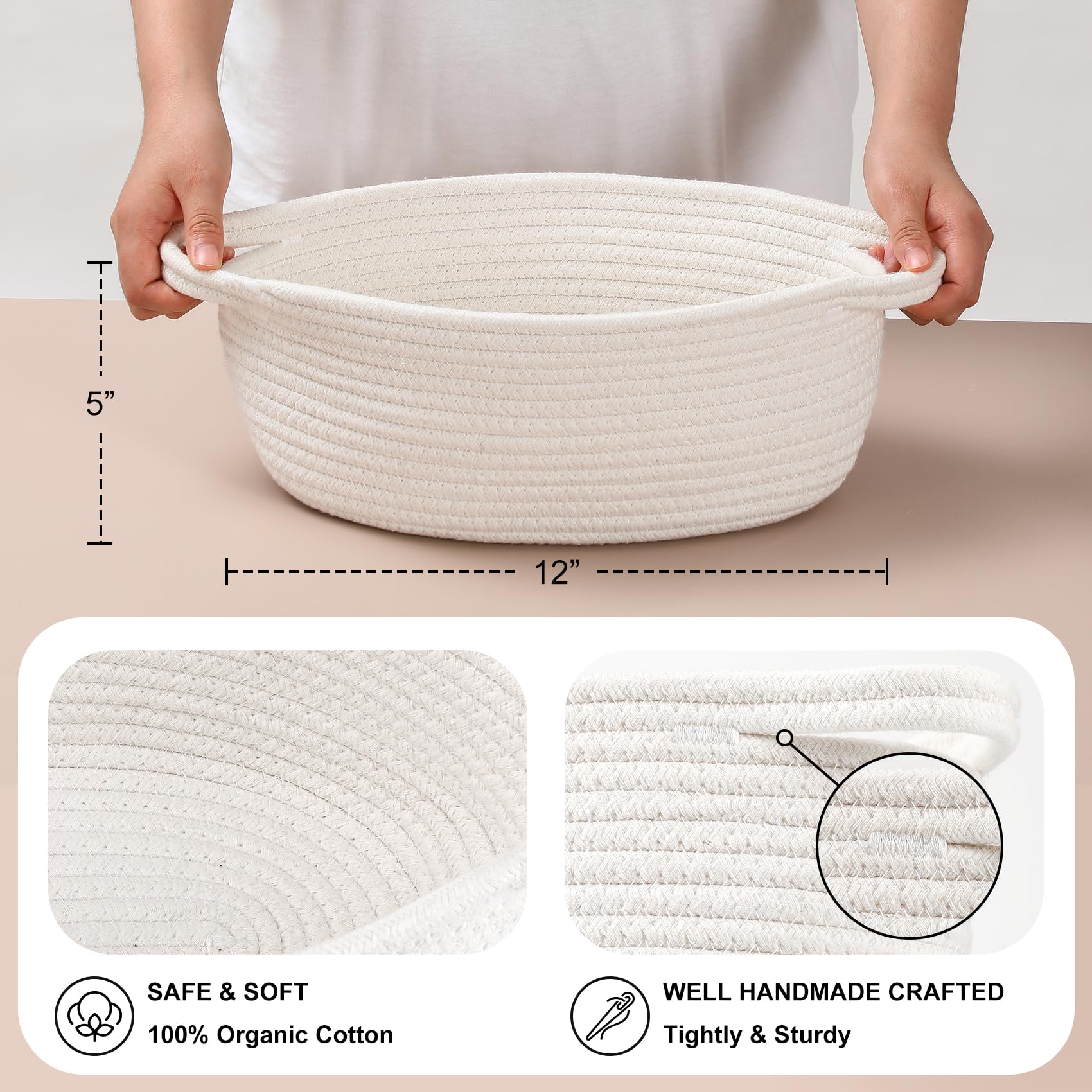 • Organic Cotton Woven: Our small boo woven basket is made of 100% organic cotton, 2 Pack white all 12'x 8'x 5', this makes the material incredibly soft and gentle. The natural cotton rope used in weaving is free of harsh chemicals, making it a reassuring choice for families with young ones.