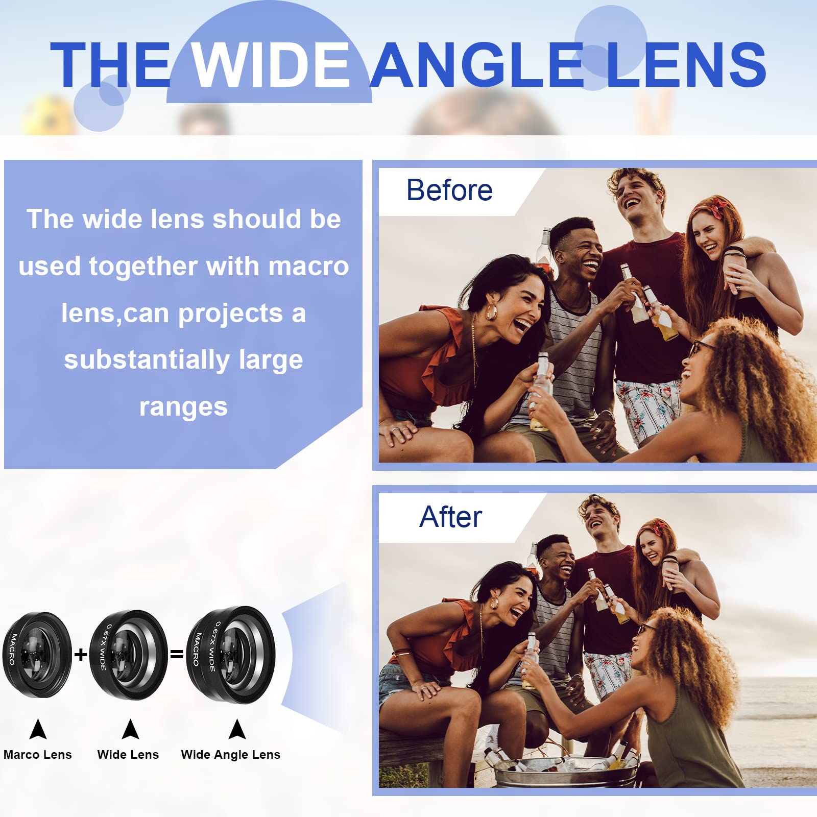 • Clear and Sturdy: with reliable quality material, the cell phone camera lens kit can serve you for a long time; The outer ring of the lens is made of aluminum, which is sturdy to resist deform, corrode, break, can preserve the lens from scrapes, scratches, bumps, and bruises; And the acrylic lenses featured with clear and wearproof performance, can bring you enjoyable using experience
