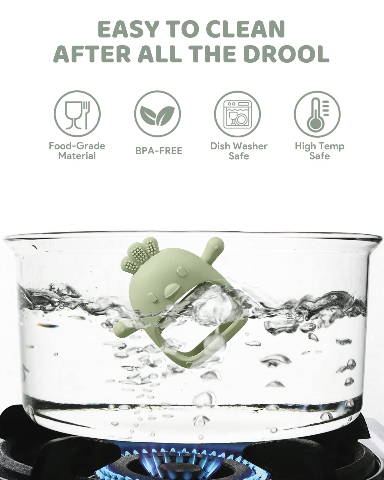 • 【Give your little one a hand with teething】The Silicone Teething Mitten is the perfect solution for babies who aren't yet able to hold onto teethers. The soft silicone mitten fits over little hands, and the inner bar provides extra grip support for babies to grasp. Plus, the mitten protects babies from chewing on their hand—or anything else they could get their teeth on. The character's 'arms' mimic a nipple, helping further soothe fussy little ones.