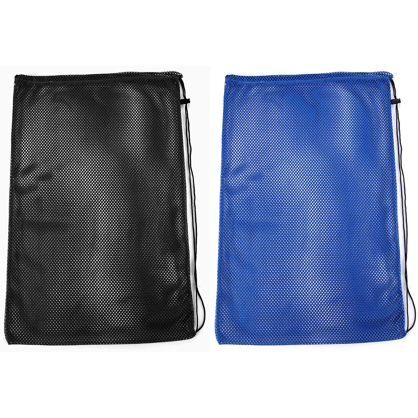 2 Packs Mesh Gear Bag for Snorkel Equipment, Oversized 18" x 27" Mesh Dive Bag Scuba Diving Bag Snorkel Bag Backpack for Snorkeling Gear, Fins, Swimming Gear, Beach and Sports Equipment (Black & Blue)