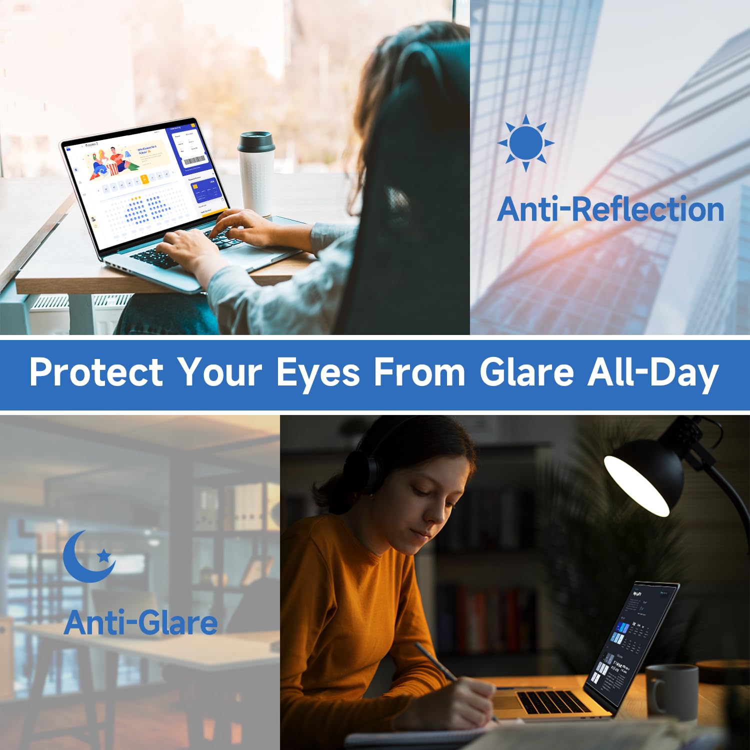 • 【Multifun Protection】In addition to its blue light protection, this anti glare computer screen cover offers dual protection for your computer. It also protects your screen from scratches, providing extra peace of mind when using your device. The anti-glare feature helps to eliminate annoying screen glare and delivers an unparalleled visual experience.