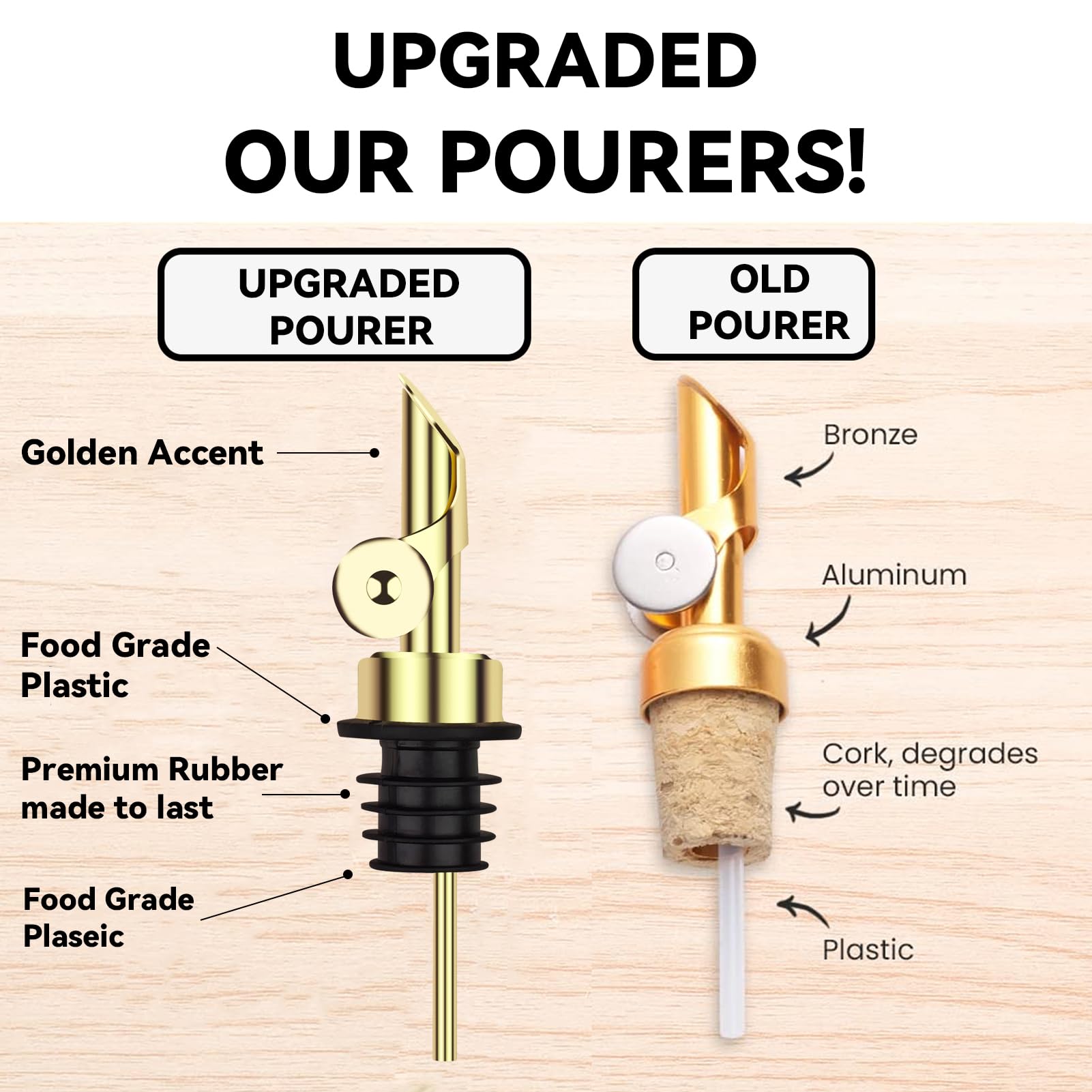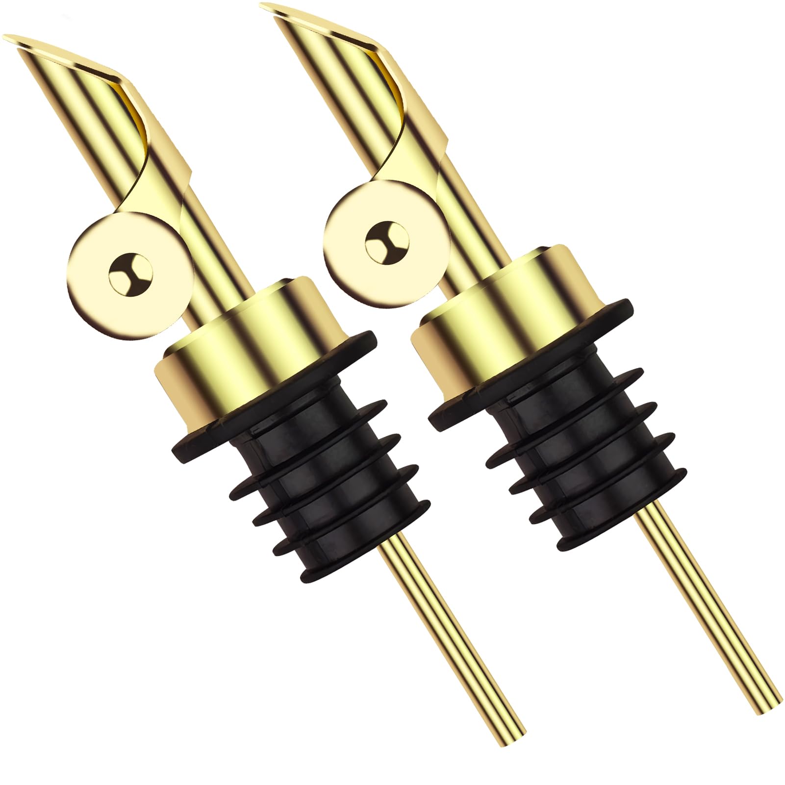 2 Pcs Olive Oil Dispenser Bottle Spout, Speed Liquor Pour Spout with Flip Top, Stainless Steel Auto Pour Spouts for Liquor Bottles, Oil Bottles, Vinegar, Syrup and Other Liquid Bottles Gold