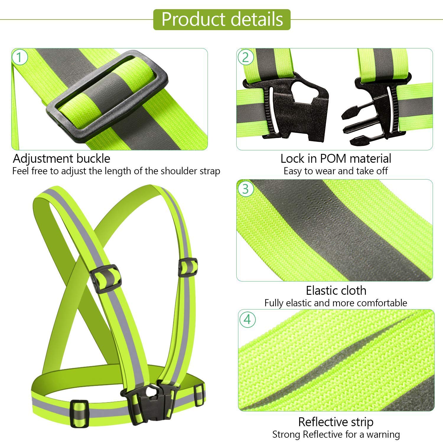 360 hi visibility reflective vest from 800 feet on all weather: dark, rain, fog Perfect reflective running vest, reflective cycling vest, reflector walking gear Wear the reflective vest over any shirt, tops, jersey or jacket Fully adjustable suspenders, lightweight, breathable and no batteries to worry The bright and wide reflective strip give you a safe cycling! Best sports gear for runners and any outdoor activity at the night! Good for adults, children, women and men. Can be freely adjusted, while comfortably fitting any size of body. The high reflective belt is visible up to 300 meters.