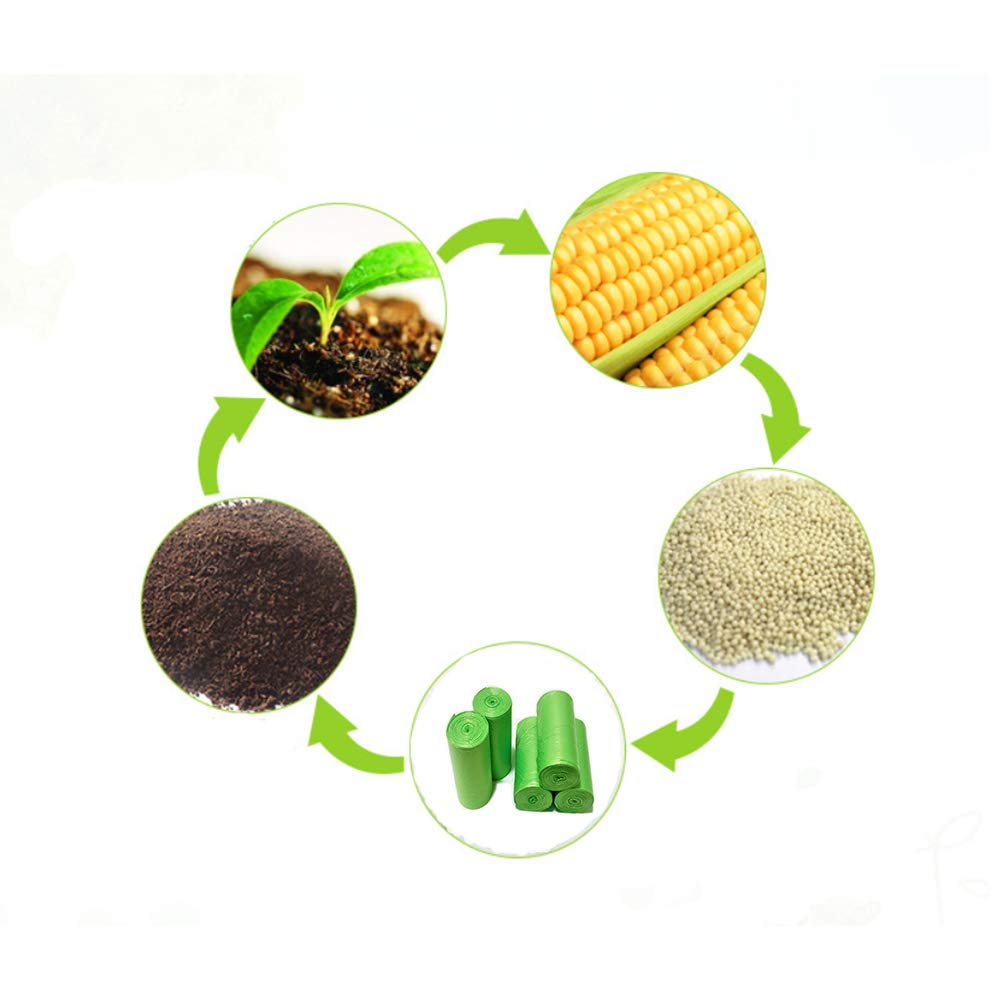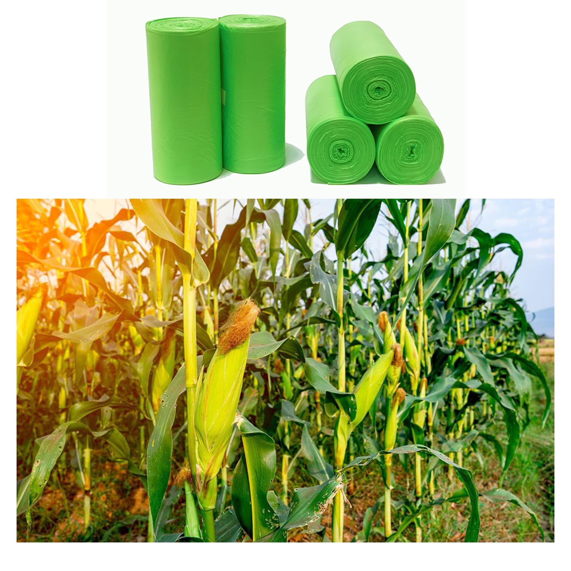 Compostable garbage bags are made of PSM(corn starch extract), they not only meet our daily need but also can be decomposed into carbon dioxide and water by microorganisms in the soil under natural conditions to complete the organic cycle.