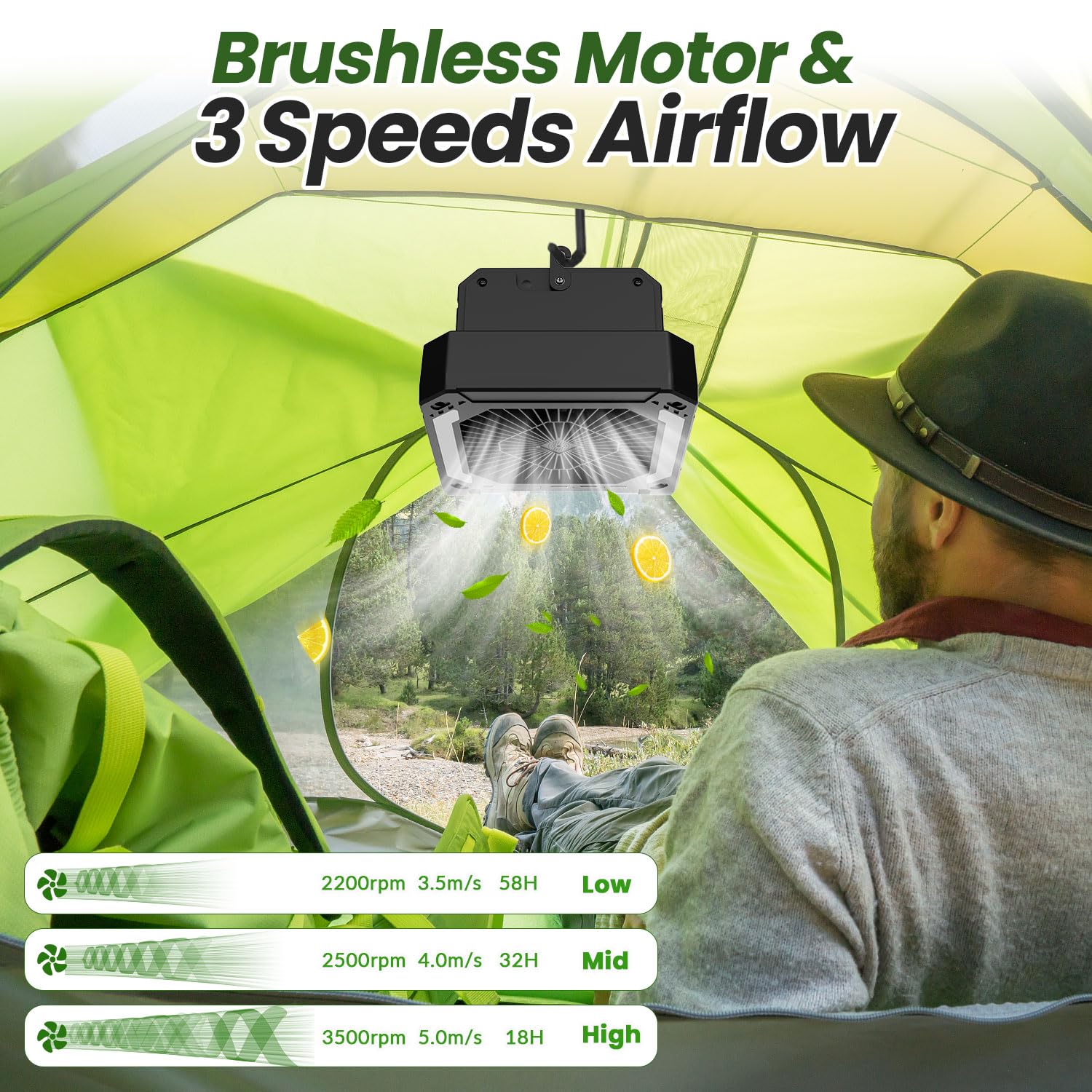 • 【Super-bright Lantern】The rechargeable desk fan features a daylight lamp with multiple settings( low-100 lumen, high-200 lumen). Ensuring you're never left in the dark. Perfect for bedroom chilling, office, camping, barbecue or power outages lighting abilities, etc.